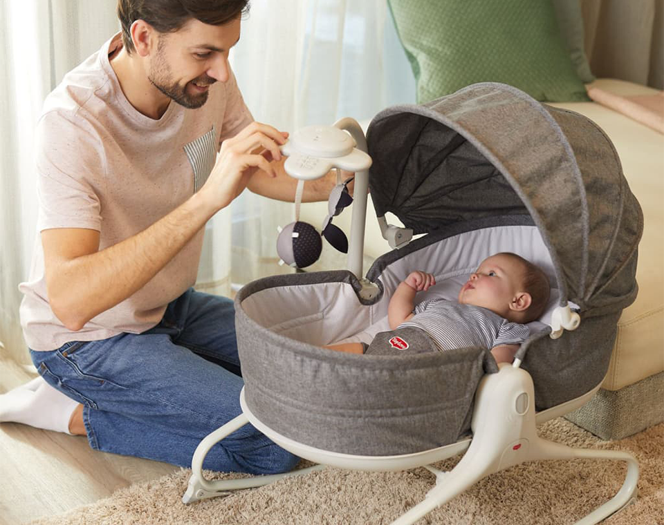 - פיתוח אינטיליגנציה רגשית - הנדנדה מעוצבת באופן ייחודי שמרגיע תינוקות עם חופה מרגיעה, סביבה נעימה ותנועות נדנדה מרגיעות התומכות בהתפתחות האינטיליגנציה הרגשית