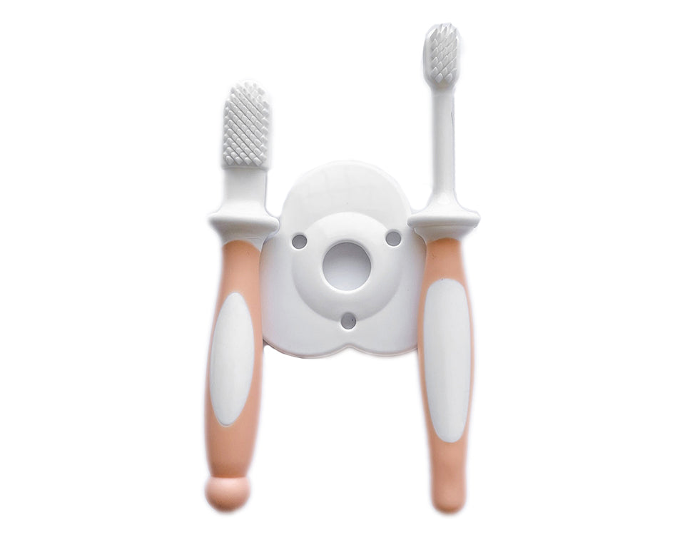 ערכת מברשות המיועדת להקניית הרגלי צחצוח שיניים .סט זה מגיע עם מברשת שיניים אימונית ,מנקה לשון ופקק בטיחות גמישים במיוחד