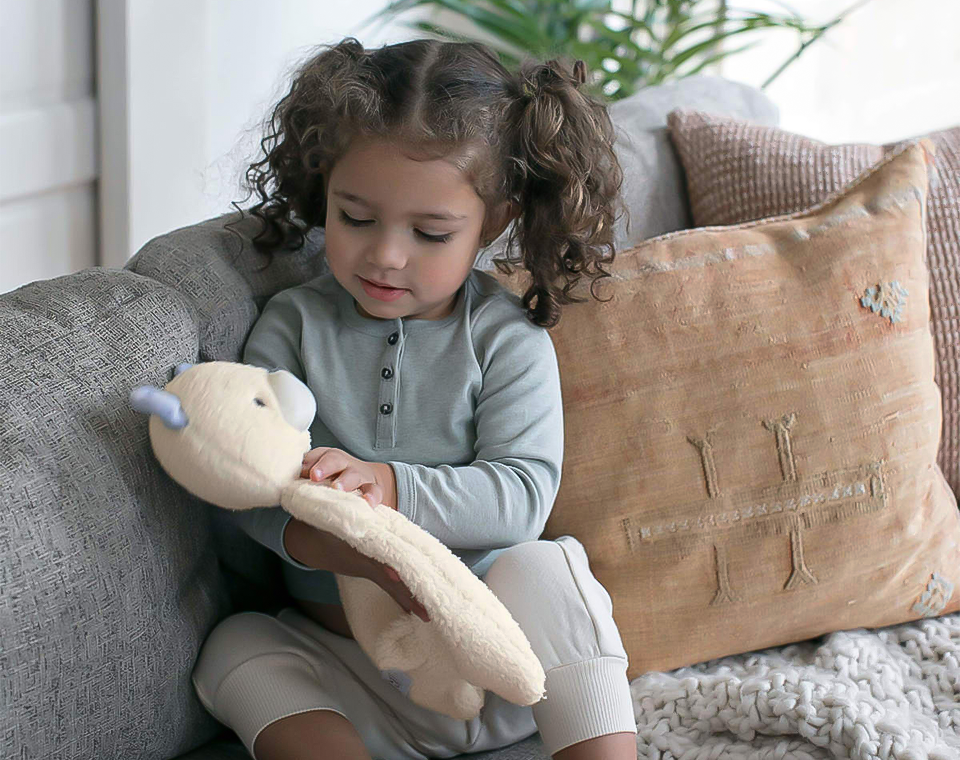 - כל פרט בבובה וסוגי בד הקטיפה נבחרו במטרה לגרות את התינוק לחבק את הבובה.