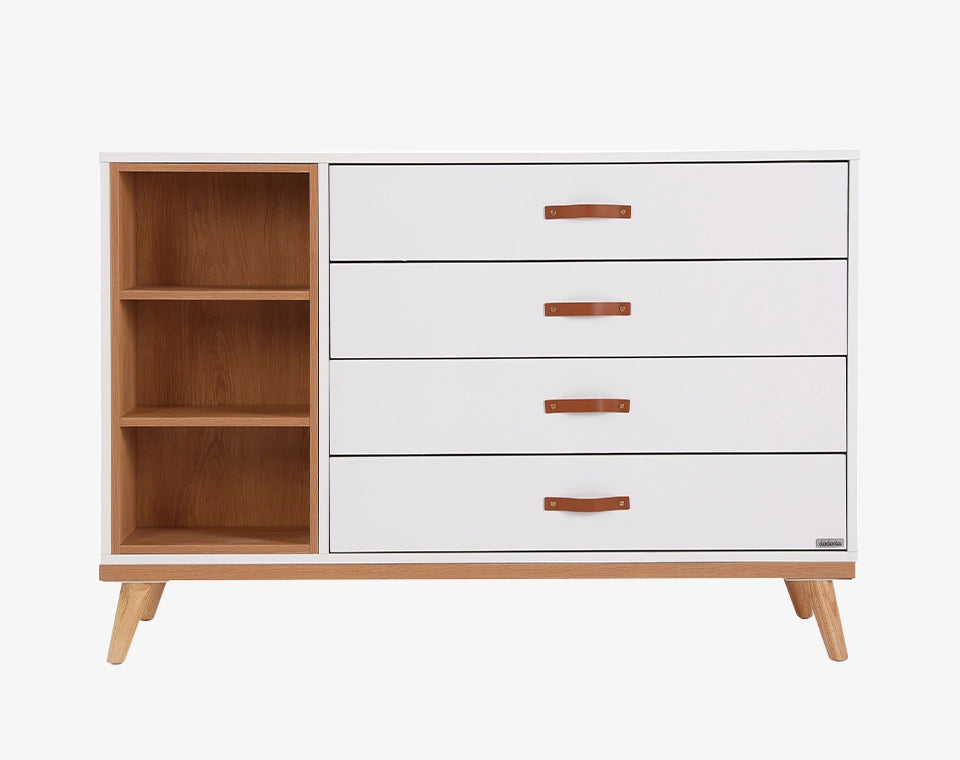 - שידה בעיצוב מודרני ופונקציונלי, מאפשרת אחסון נסתר וגלוי, בעלת מדפי פתוחים בחזית ובצד עבור משחקים, ספרים, חיתולים ועוד.