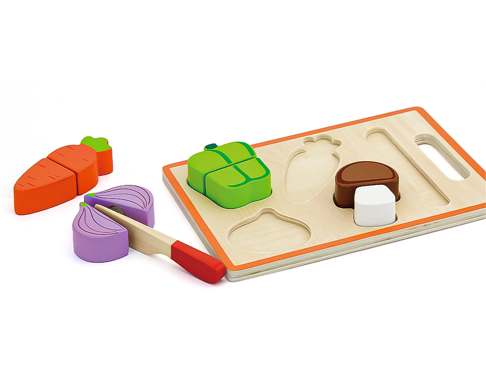 סט לחיתוך ירקות מעץ מלא ואיכותי מבית ויגה, סט הכולל 4 ירקות מעץ עם אפשרות חיתוך וסכין.