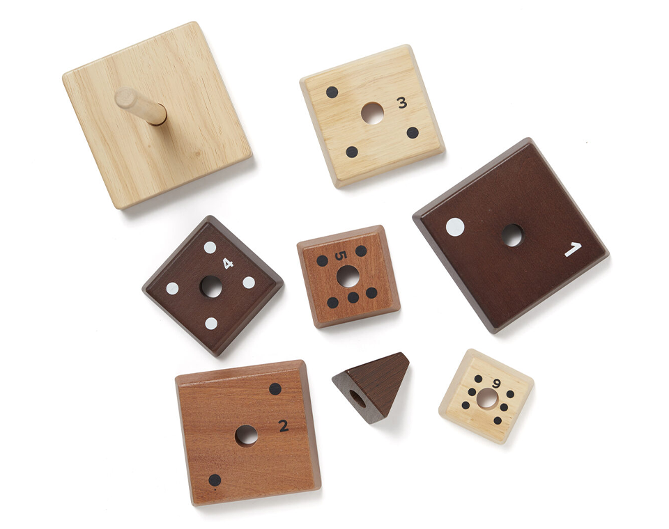 מגדל פירמידה עם קוביות עץ לכל שכבה של הערימה יש מספר מתאים בצורה של נקודות ודמות.