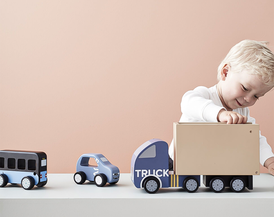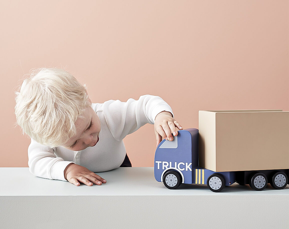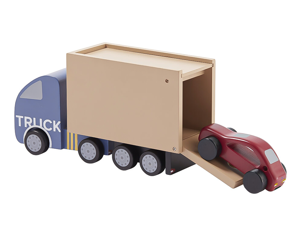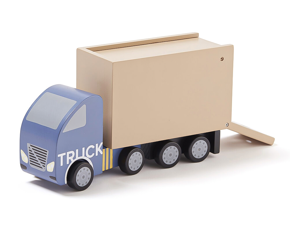 משאית מעץ מלא עם שני פתחים המעודדים משחק דמיוני יותר.