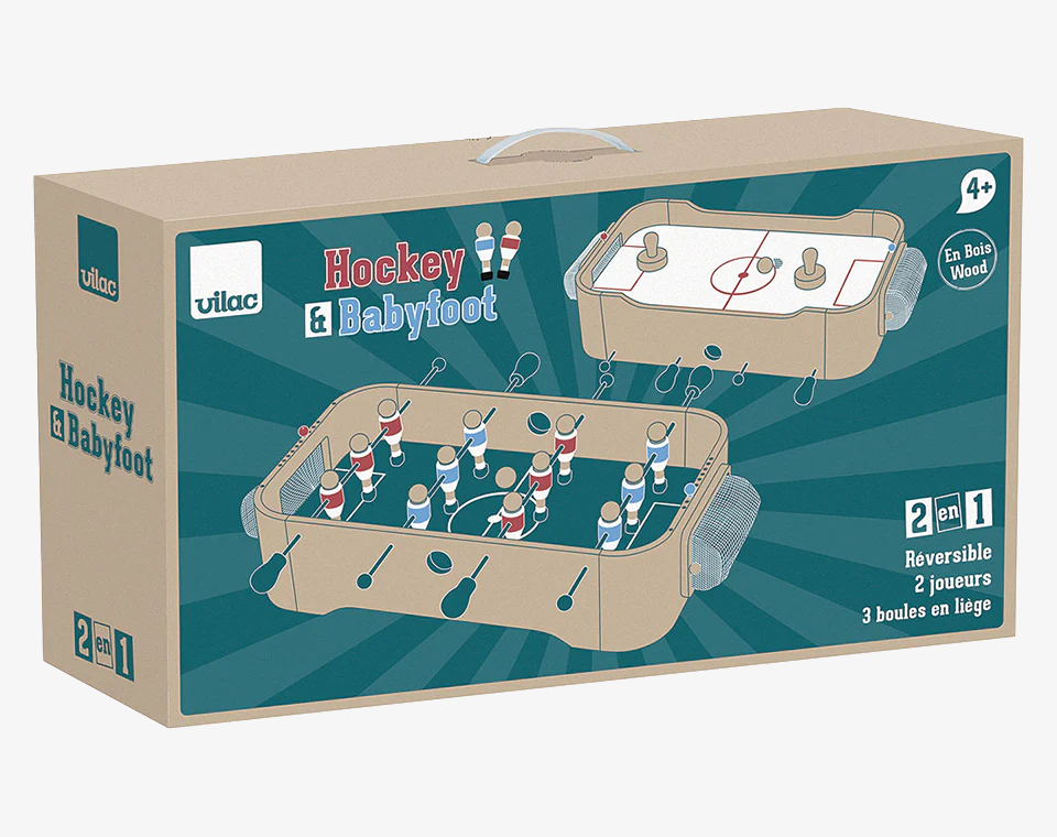 - תכירו את ההוקי וכדורגל השולחן הנהדרים של Vilac , משחק מיומנות 2 ב-1.