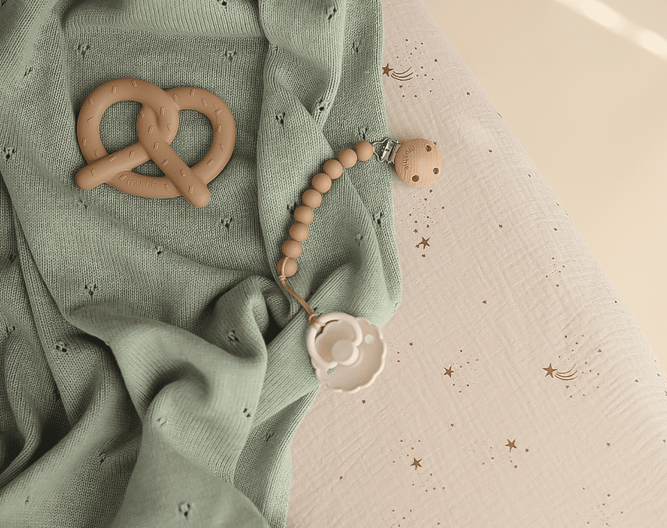 עזור להרגיע את החניכיים המגורות של תינוקך עם קולקציית הנשכנים של מושי.