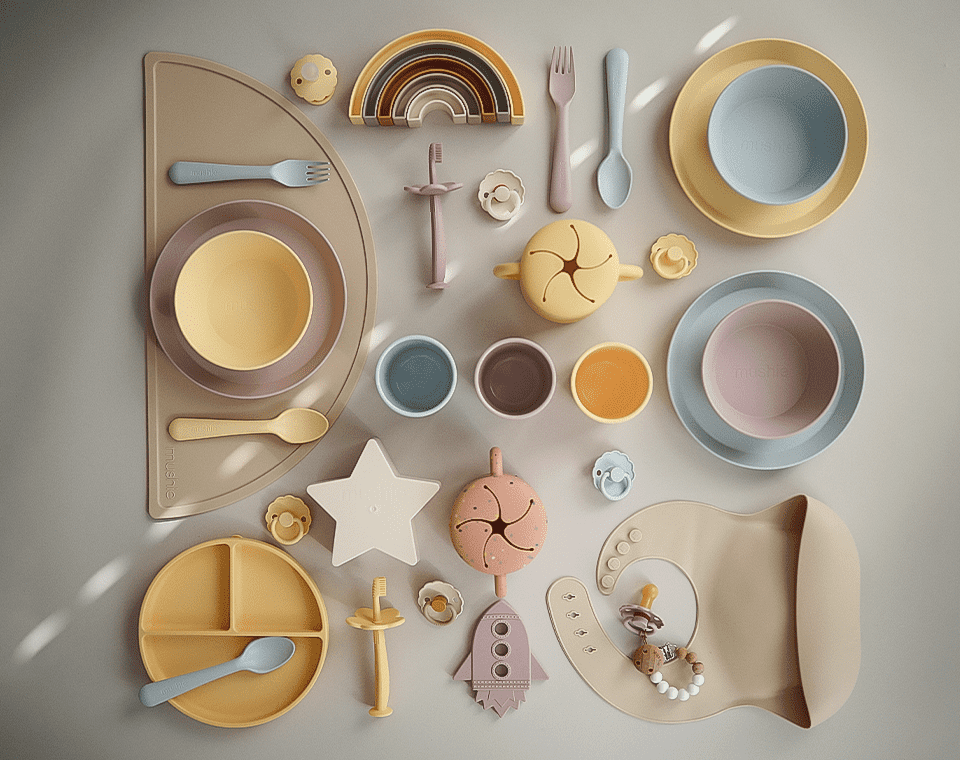 זוג קעריות אוכל מבית מושי עשויות פלסטיק פוליפרופילן ללא BPA, הקעריות מגיעות במגוון צבעים רכים ועיצוב נקי וקלאסי.