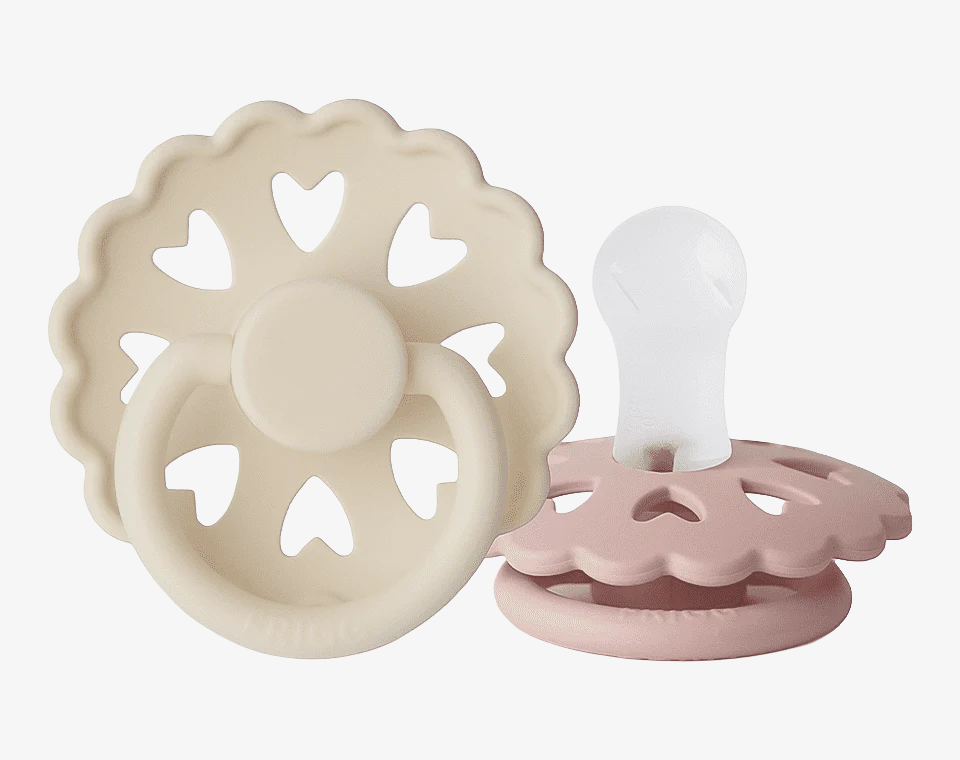 זוג מוצצי סיליקון מקולקציית Fairytale מבית FRIGG עוצבו בקפידה בכדי לשמור על נוחות תינוקכם.