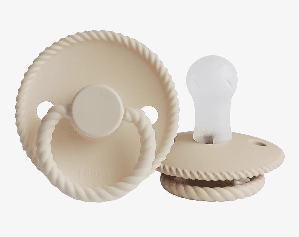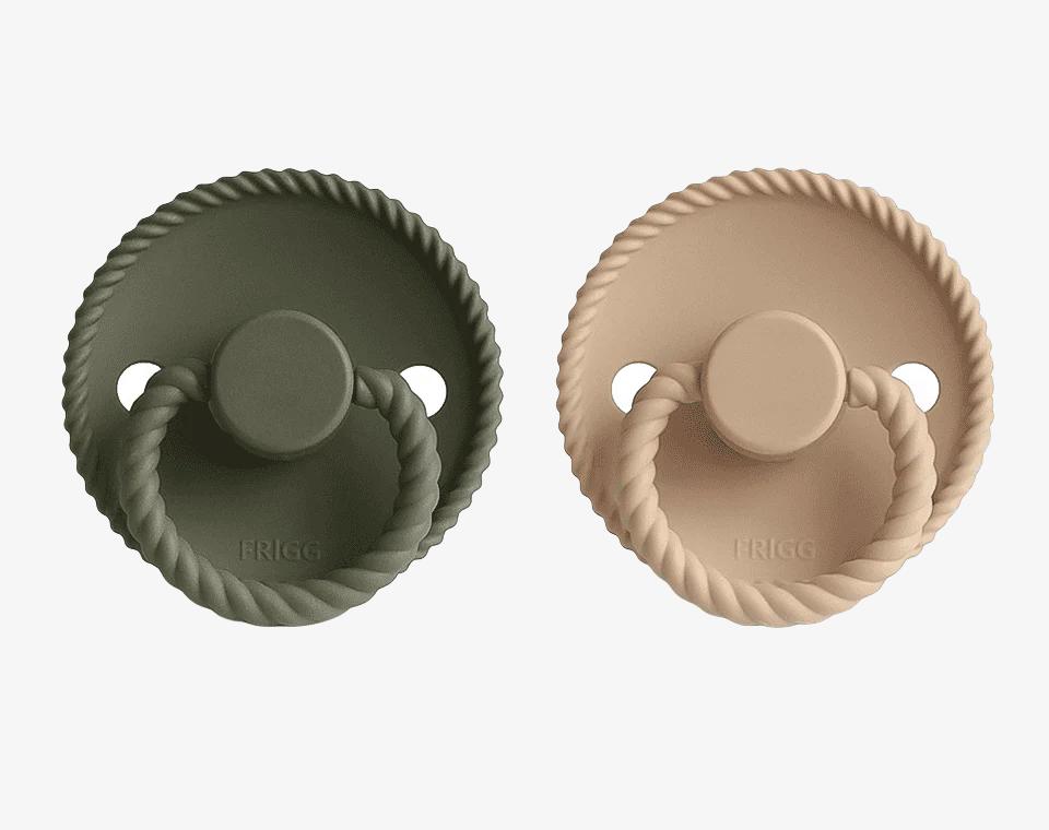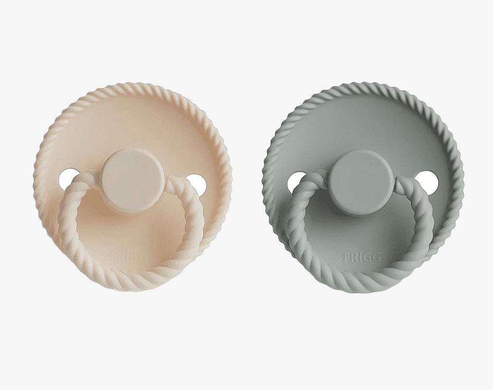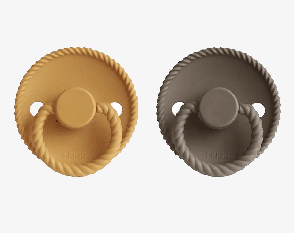 זוג מוצצי סיליקון מקולקציית ROPE מבית FRIGG בעלי עיצוב ייחודי, עוצבו בקפידה בכדי לשמור על נוחות תינוקכם.