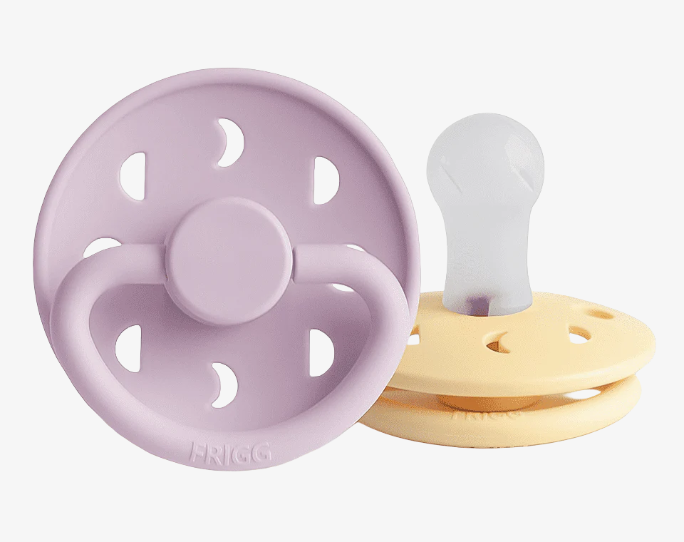 זוג מוצצי סיליקון מקולקציית MOON מבית FRIGG בעלי עיצוב ייחודי בהשראת הירח, עוצבו בקפידה בכדי לשמור על נוחות תינוקכם.