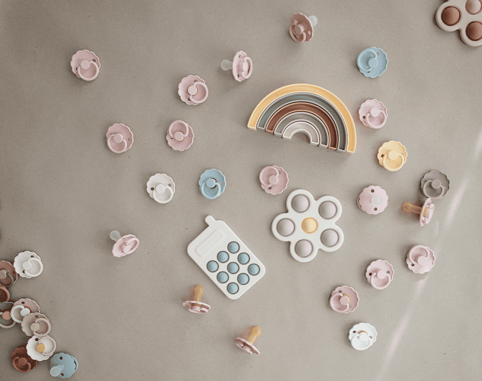 צעצוע שמעודד חושים, מוטוריקה וקשר עין-יד, כמו קשת פעילות, מזרן פעילות, משחקי קוביות ועוד.