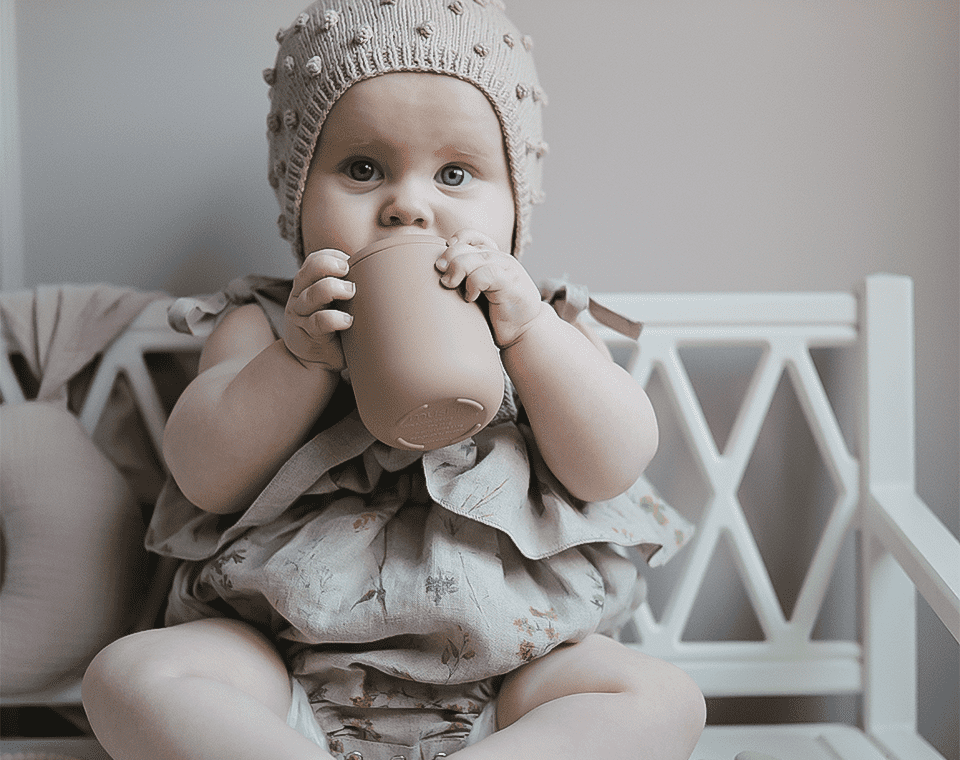 כוס השתייה של Mushie מותאמת לידיים הקטנטנות של ילדכם ומגיעה עם מכסה סיליקון נשלף ואטום בפני נזילות.