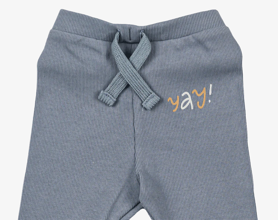 זוג מכנסיים מבד ריב מבית מותג האופנה והטקסטיל של Boobee