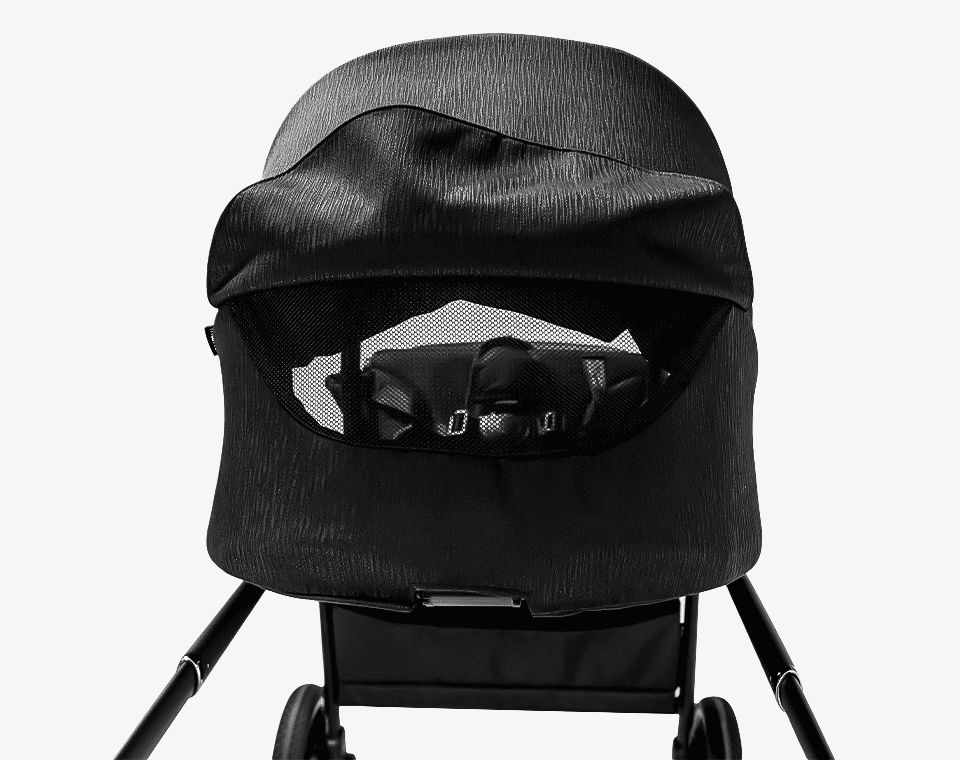 - גגון ענק לכיסוי מרבי בעל חלון אוורור ומאפשר צפייה בתינוק.
