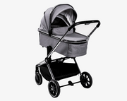 עגלה משולבת עם סל שכיבה וטיולון, כוללת שלדת אלומיניום קלה, קיפול ייחודי ביד אחת גם עם ונגד כיוון הנסיעה, גלגלי PU עם שיכוך זעזועים וסל שכיבה מרווח עם פתחי אוורור. חוויית טיול חלקה, בטוחה ונעימה – כבר מהיום הראשון.