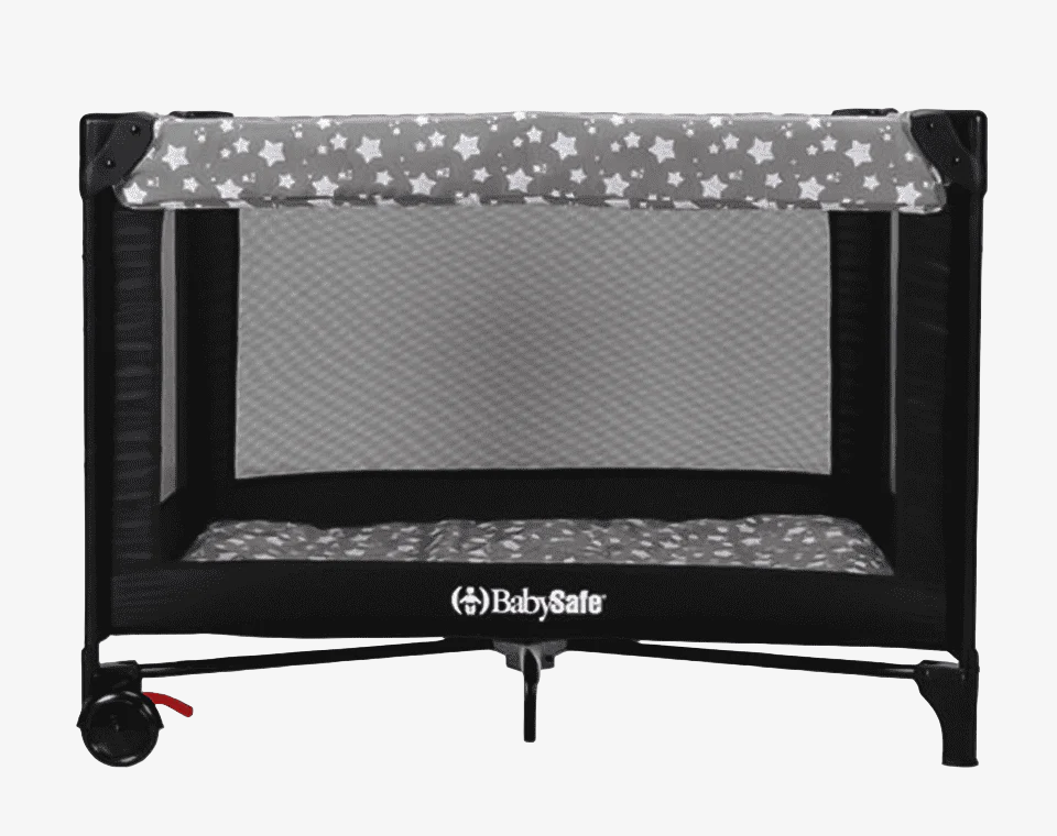 - ללול מתקפל סימפלי קוויק פולד כולל זוג גלגלים לנוחות העברה מחדר לחדר.