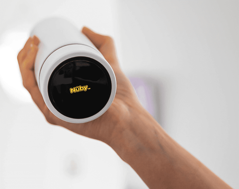 - הכנה ניידת ופשוטה! כל שעליכם לעשות הוא לשפוך מים רותחים לתוך המקרר במהירות RapidCool להוסיף תרכובת מזון לתינוקות, לחבר את המכסה, לנער אותו היטב ולהמתין 2 דקות*. זהו זה! המכסה הדיגיטלי מציג אור ירוק כשהוא מוכן, ומודיע לכם שתרכובת המזון לתינוקות בטמפרטורה מושלמת להגשה. **