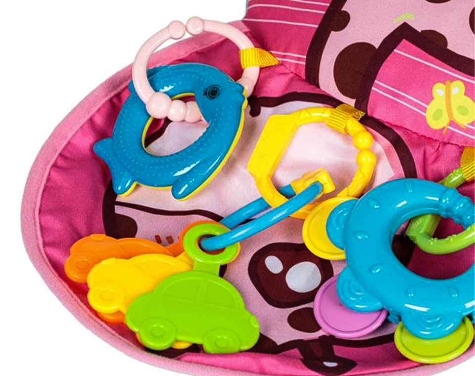 צעצוע שמעודד חושים, מוטוריקה וקשר עין-יד, כמו קשת פעילות, מזרן פעילות, משחקי קוביות ועוד.