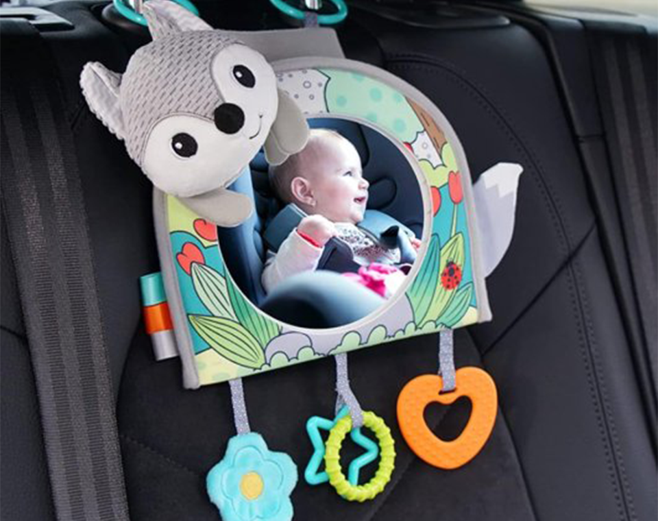מראה נתלית לרכב, מאפשרת צפייה בתינוק במהלך הנסיעה ללא הפרעות. המראה כוללת מספר צעצועים שיבדרו ויעסיקו את התינוק.