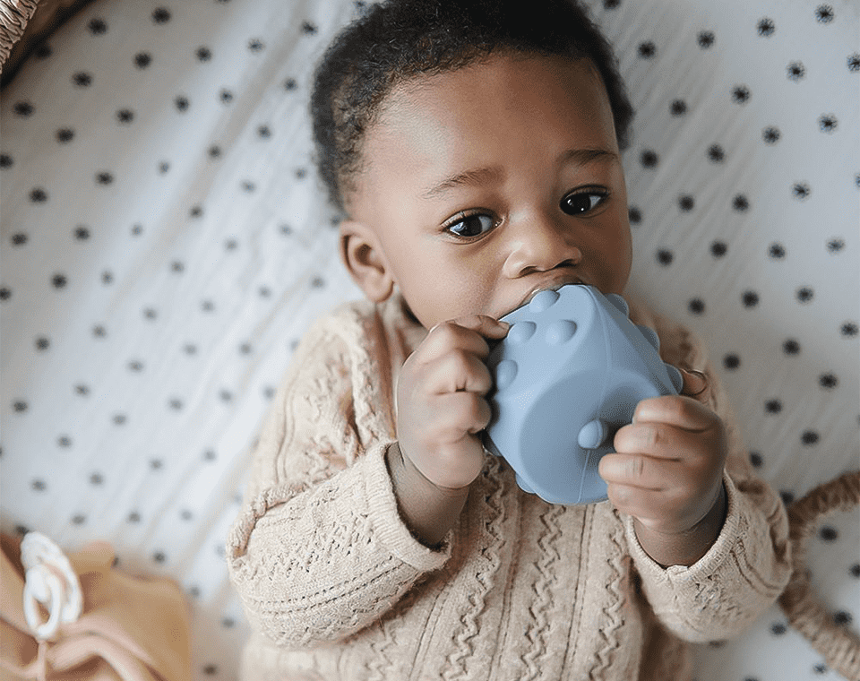זוג צעצועי לחיצה בצורת קוביה מבית מושי מיוצר תוך התחשבות בידיים קטנות מעודד חקר חושי ופיתוח מיומנות מוטוריקה עדינה עם עיצוב נקי וקלאסי בצבעים רכים