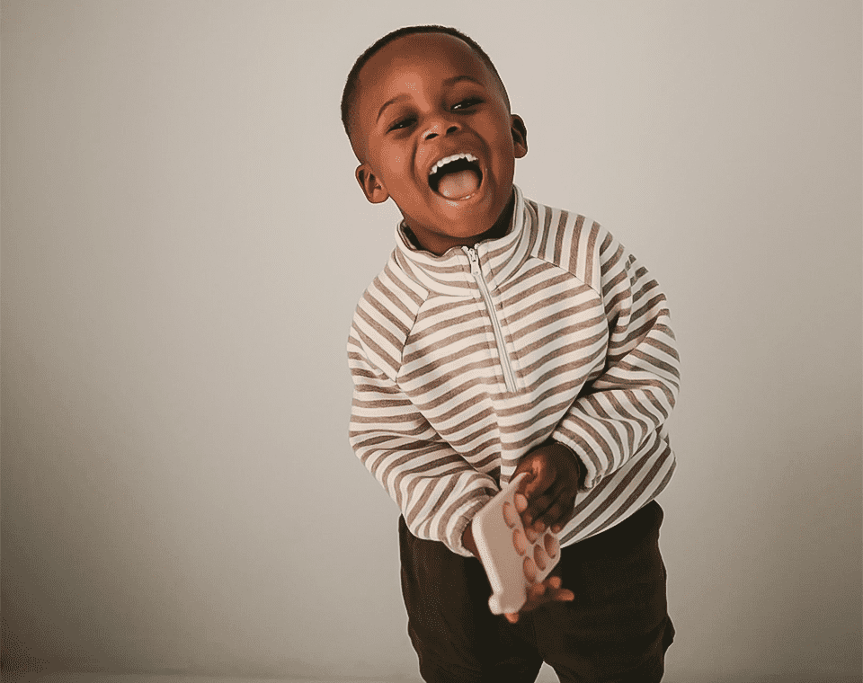 צעצוע לחיצה בצורת טלפון מבית מושי מיוצר תוך התחשבות בידיים קטנות.