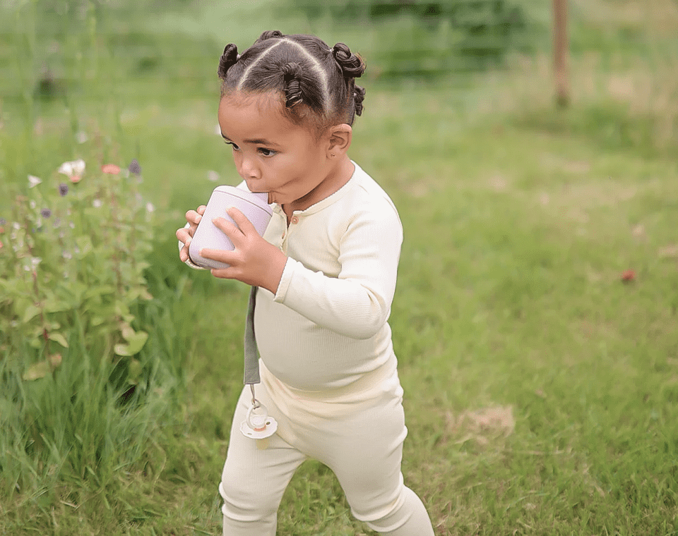 כוס השתייה של Mushie מותאמת לידיים הקטנטנות של ילדכם ומגיעה עם מכסה סיליקון נשלף ואטום בפני נזילות.