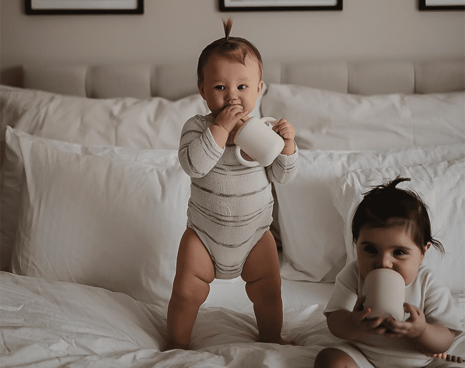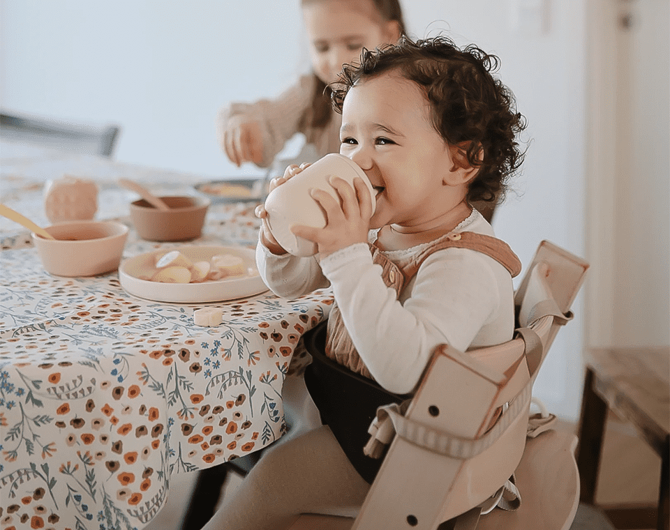 כוס השתייה של Mushie מותאמת לידיים הקטנטנות של ילדכם ומגיעה עם מכסה סיליקון נשלף ואטום בפני נזילות.