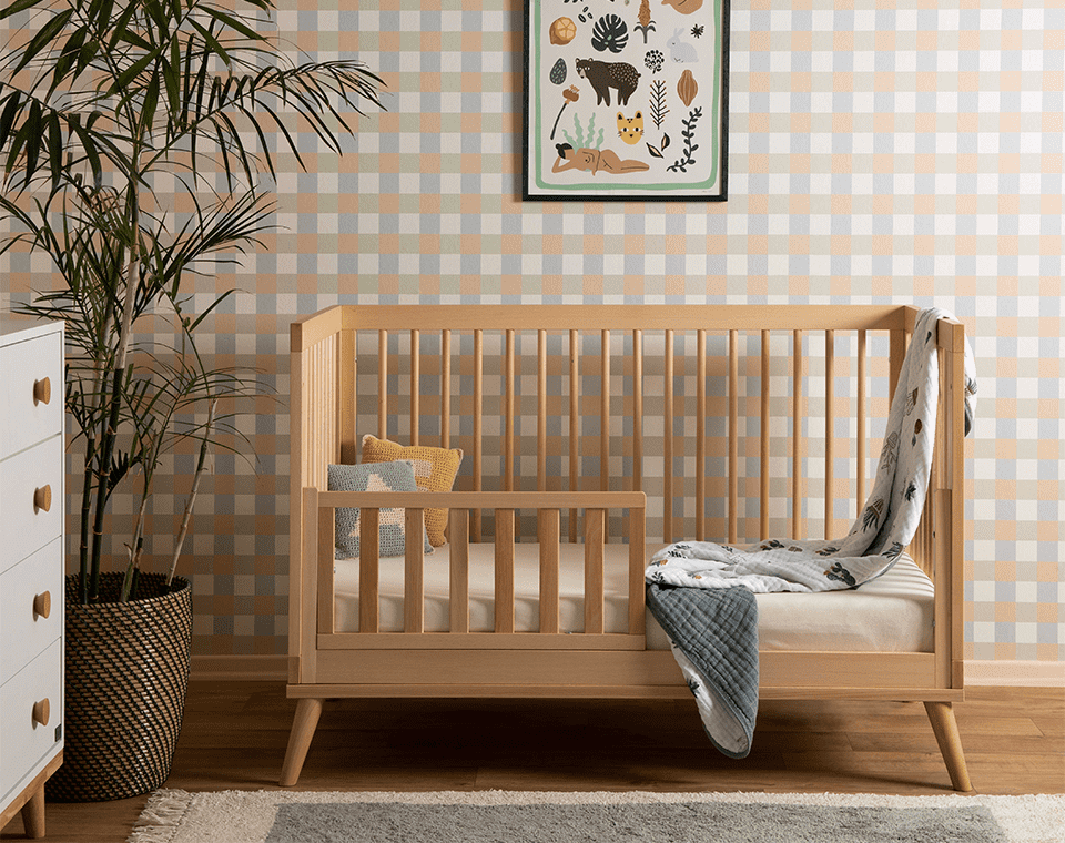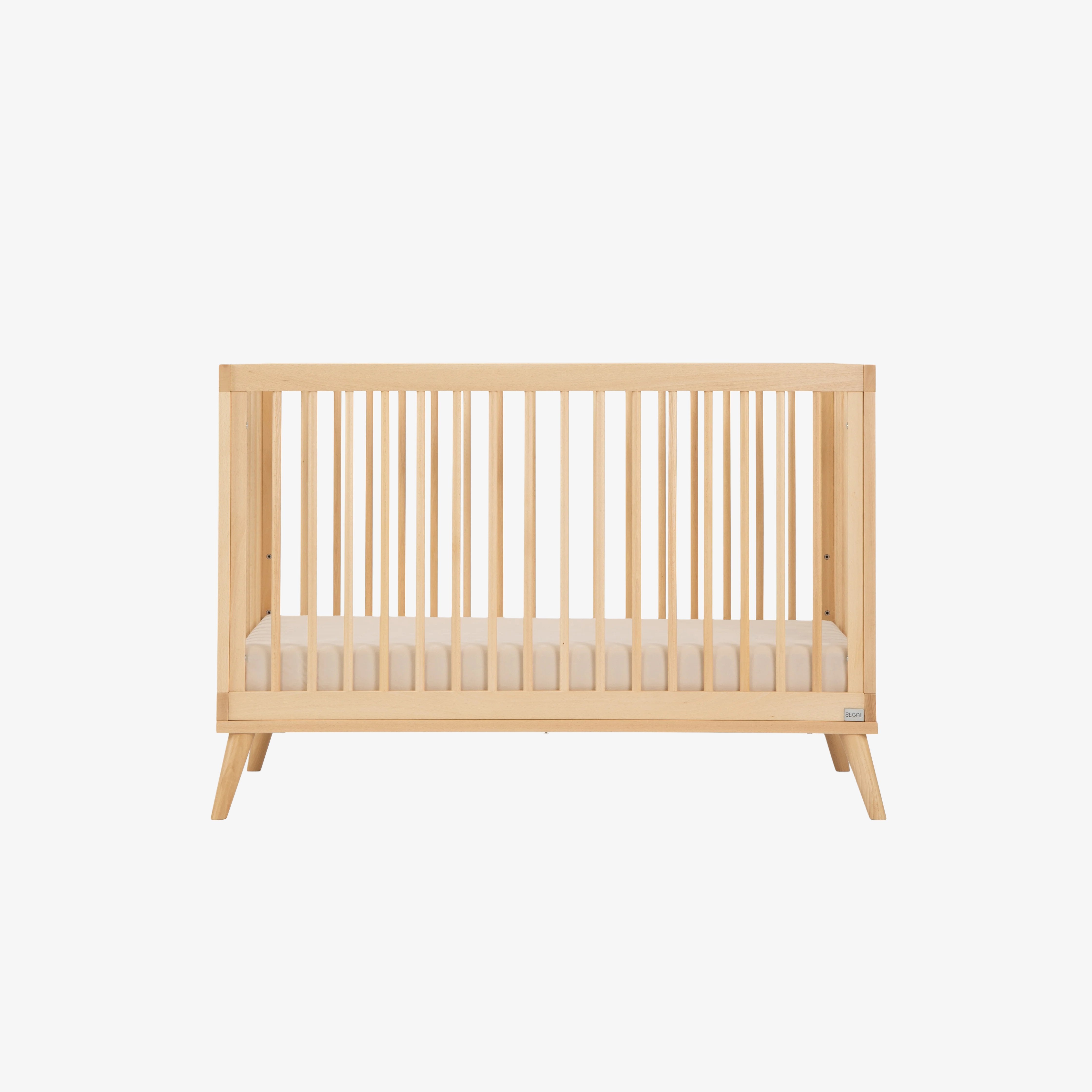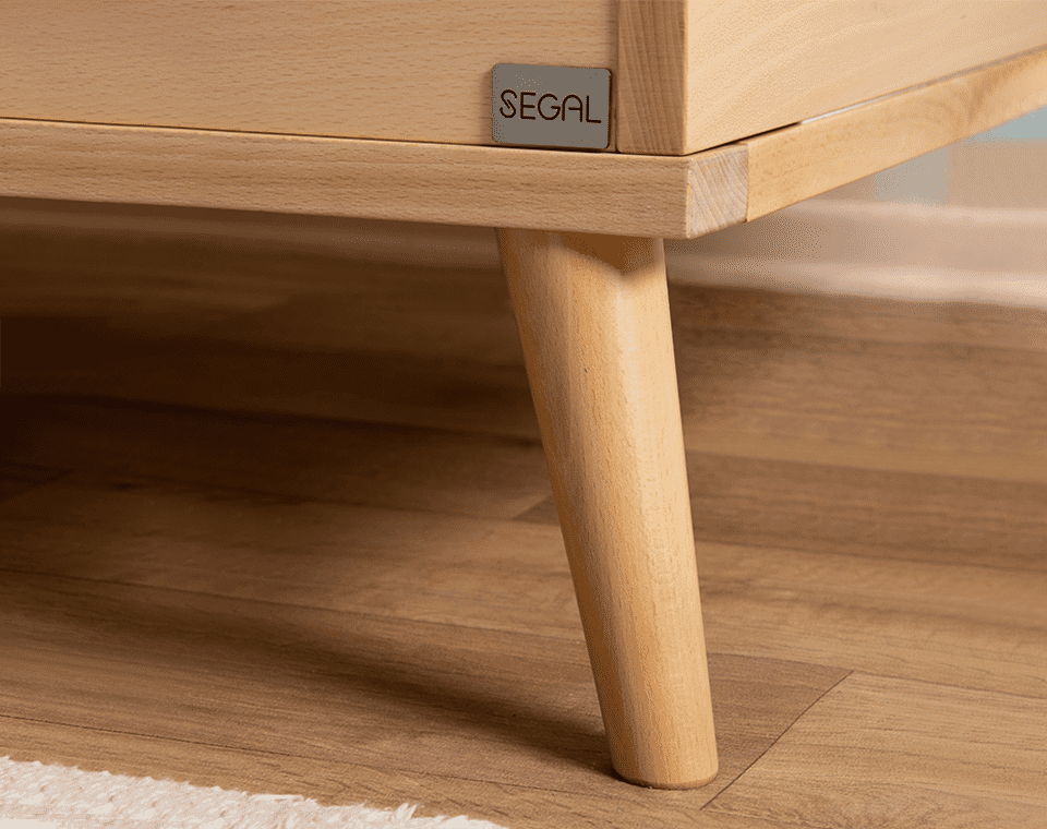 מיטת תינוק מבית סגל בייבי בעיצוב מודרני, מעוצבת בקווים נקיים וישרים. עשויה עץ בוק מלא עמיד וחזק עם אישור תקן
