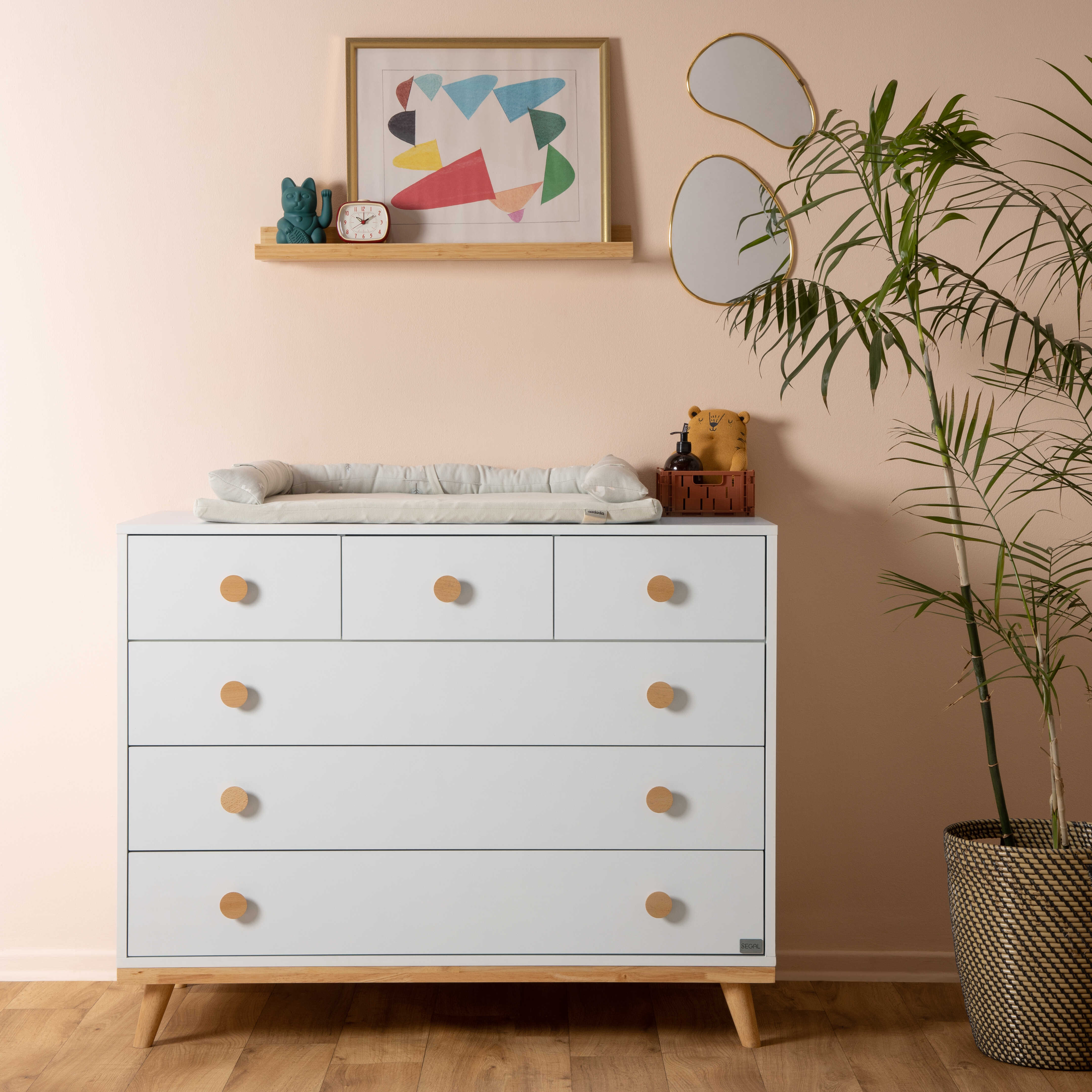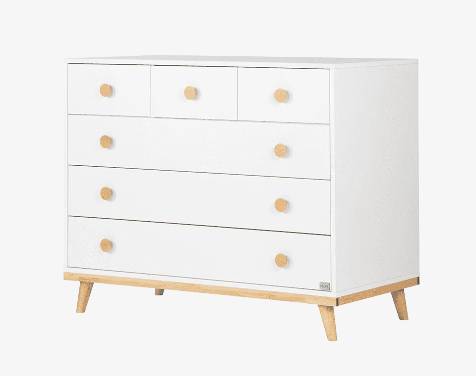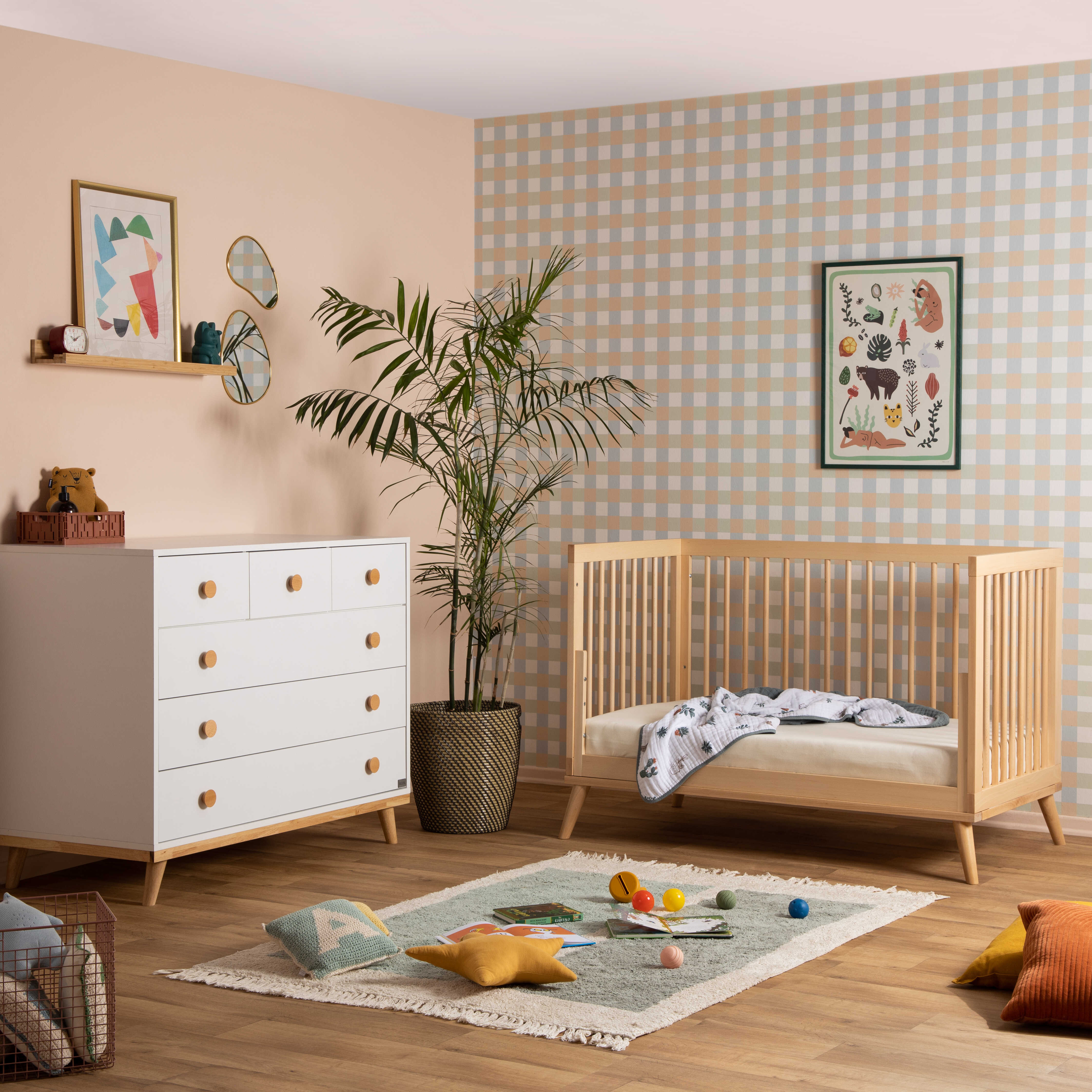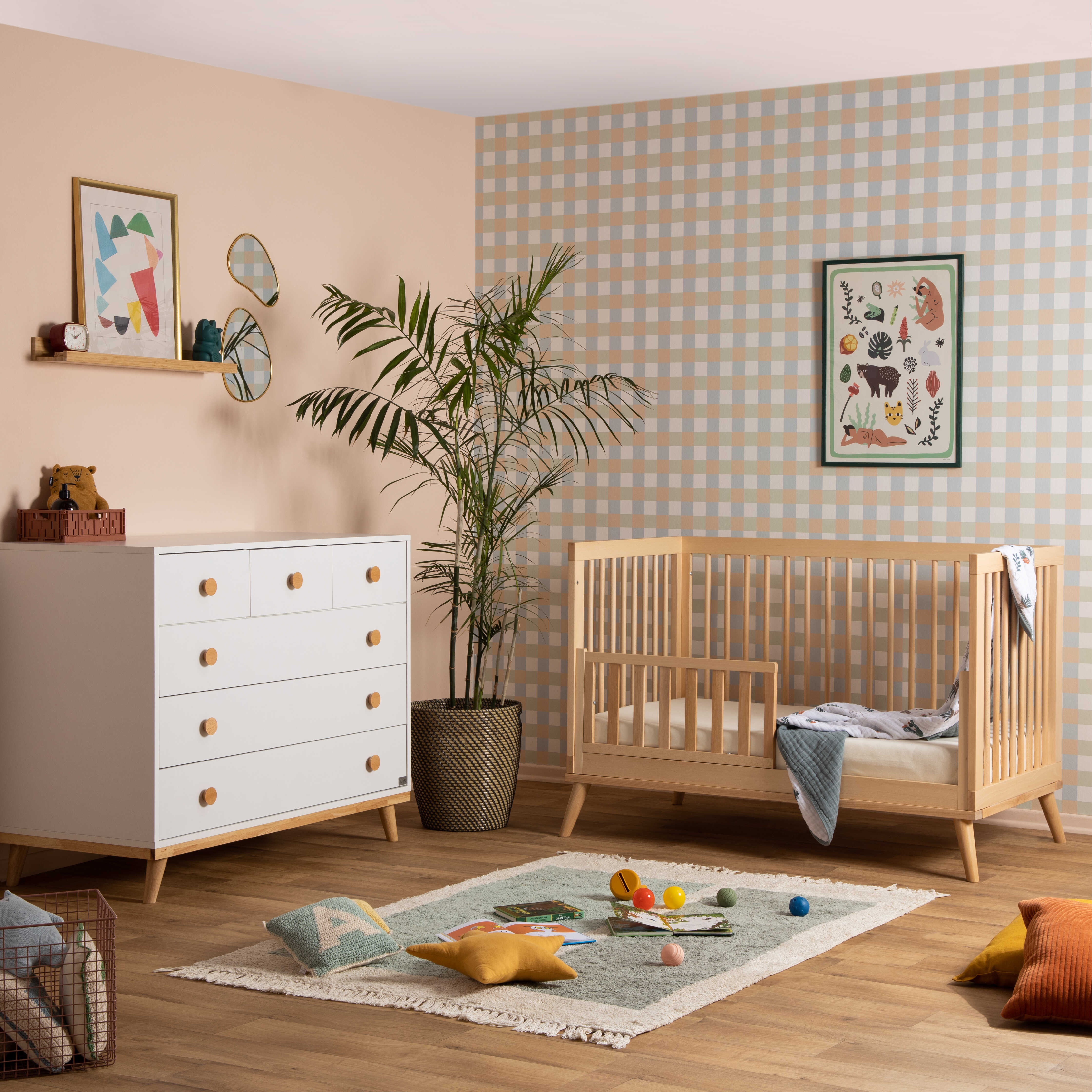 חדר תינוקות בעיצוב מודרני הכולל מיטת תינוק דגם "עדן" בצבע טבעי ושידת אחסנה מדגם "שלו" , עשויים MDF מלא