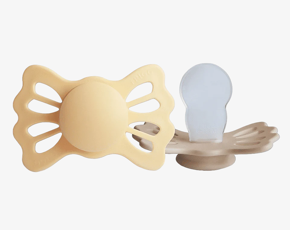 זוג מוצצי סיליקון מקולקציית LUCKY מבית FRIGG בעלי עיצוב ייחודי, עוצבו בקפידה בכדי לשמור על נוחות תינוקכם.
