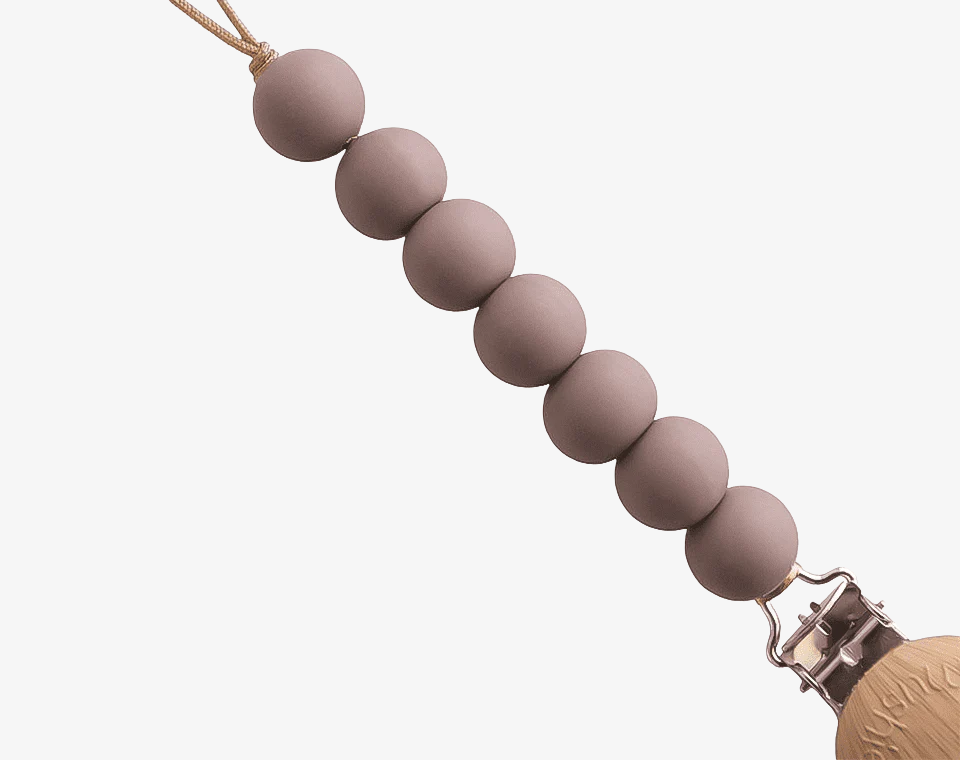 - קליפס מעוצב בחרוזי סיליקון בצבעים שונים, הוא כולל אבזם סיליקון מעץ מלאכותי, וחרוזים 100% סיליקון איכותי, ללא BPA, ללא PVC, ללא פתלטים וללא ריח.