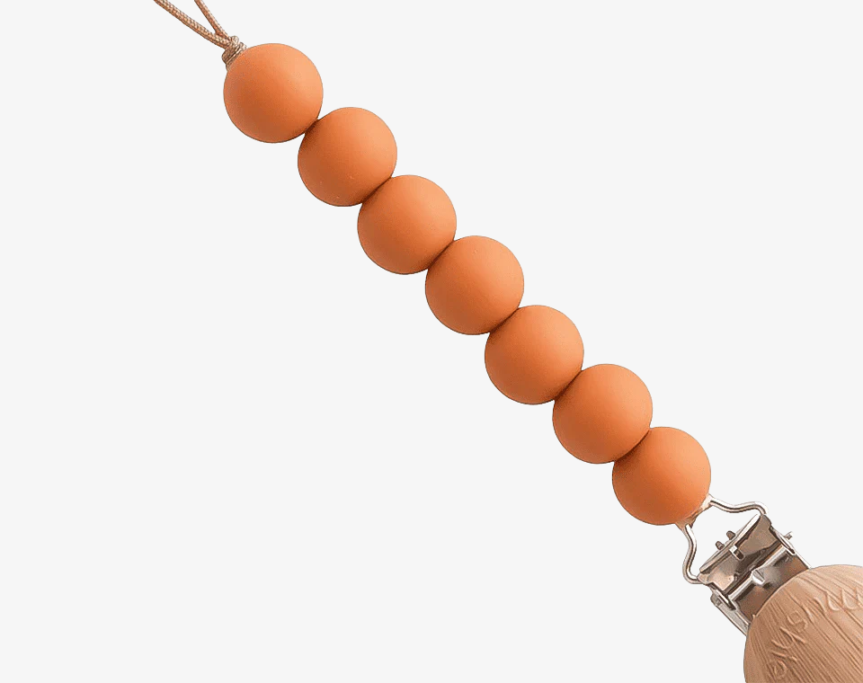 - קליפס מעוצב בחרוזי סיליקון בצבעים שונים, הוא כולל אבזם סיליקון מעץ מלאכותי, וחרוזים 100% סיליקון איכותי, ללא BPA, ללא PVC, ללא פתלטים וללא ריח.
