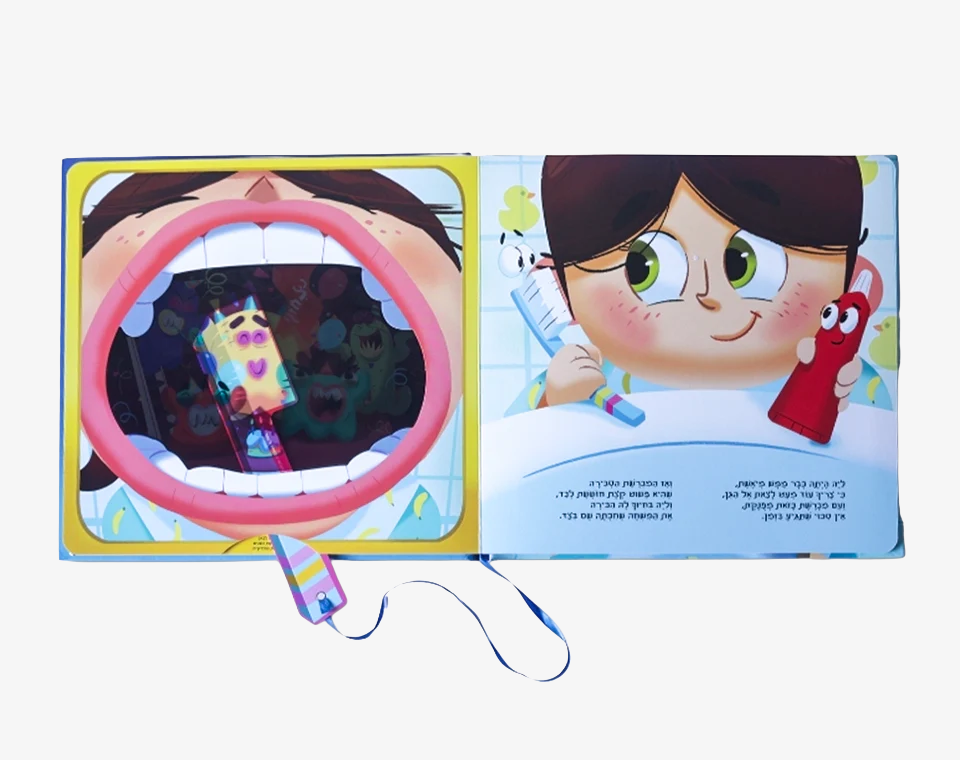 לספר מצורפת מברשת שיניים יחודית המאפשרת לקורא לראות במו עיניו את המתרחש בתוך חלל הפה, לפגוש את חבורת החיידקים שמתגוררים שם, ולהלחם בהם.