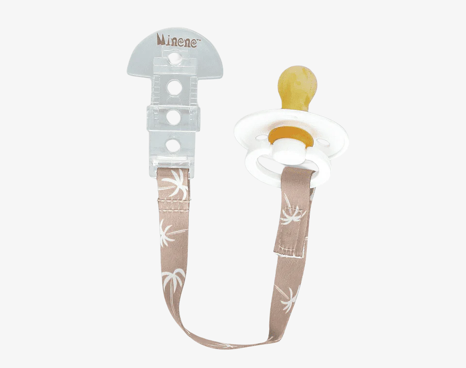תופסן מוצץ עם שרוך בגוונים ועיצובים שונים, נתפס על בגד/סינר התינוק באמצעות קליפס ומתחבר למוצץ באמצעות סקוטץ.