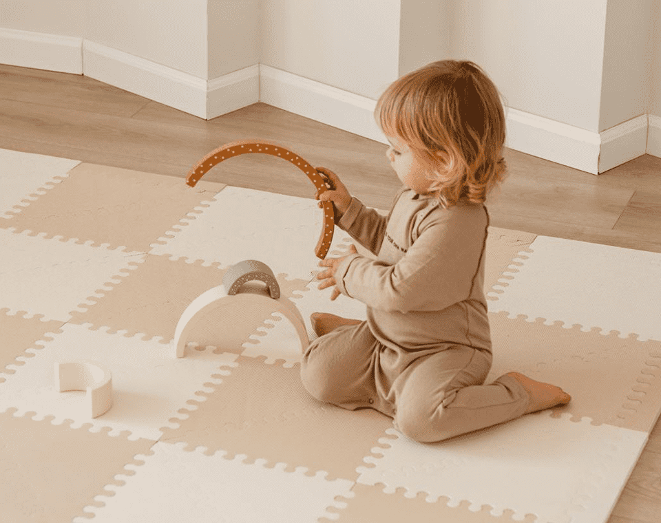 משטח פעילות גדול לתינוק ולילד ליצירת סביבת משחקים רכה, בטוחה ונוחה, מורכב מאריחי פאזל גמישים שניתנים להרכבה במגוון עיצובים וגדלים המתאימים לעיצוב כל חדר