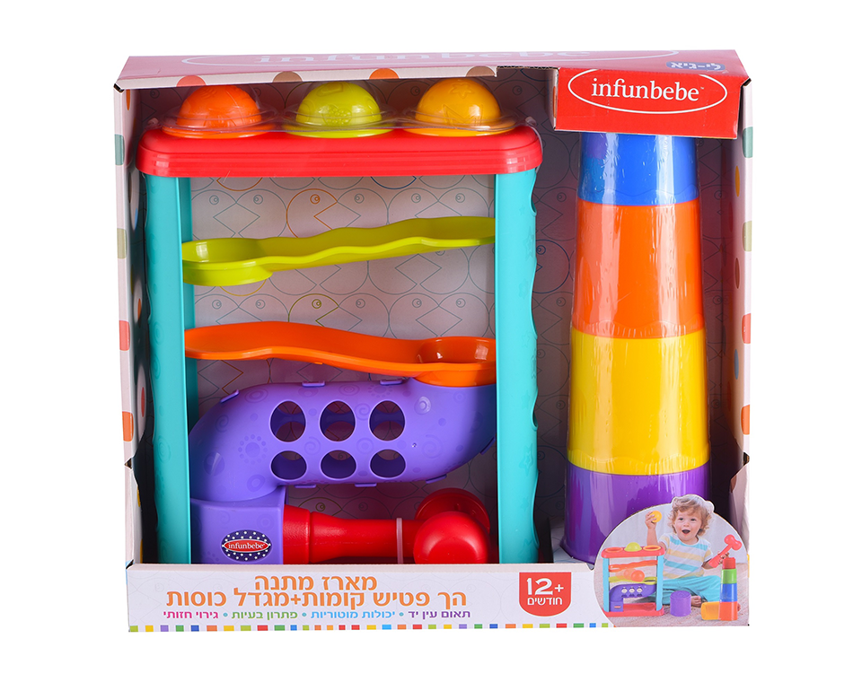 - משחק הך פטיש צבעוני המשלב מסלול כדורים במדרון: הכדורים המתגלגלים בין השלבים השונים מסקרנים ומשעשעים את הקטנטנים.