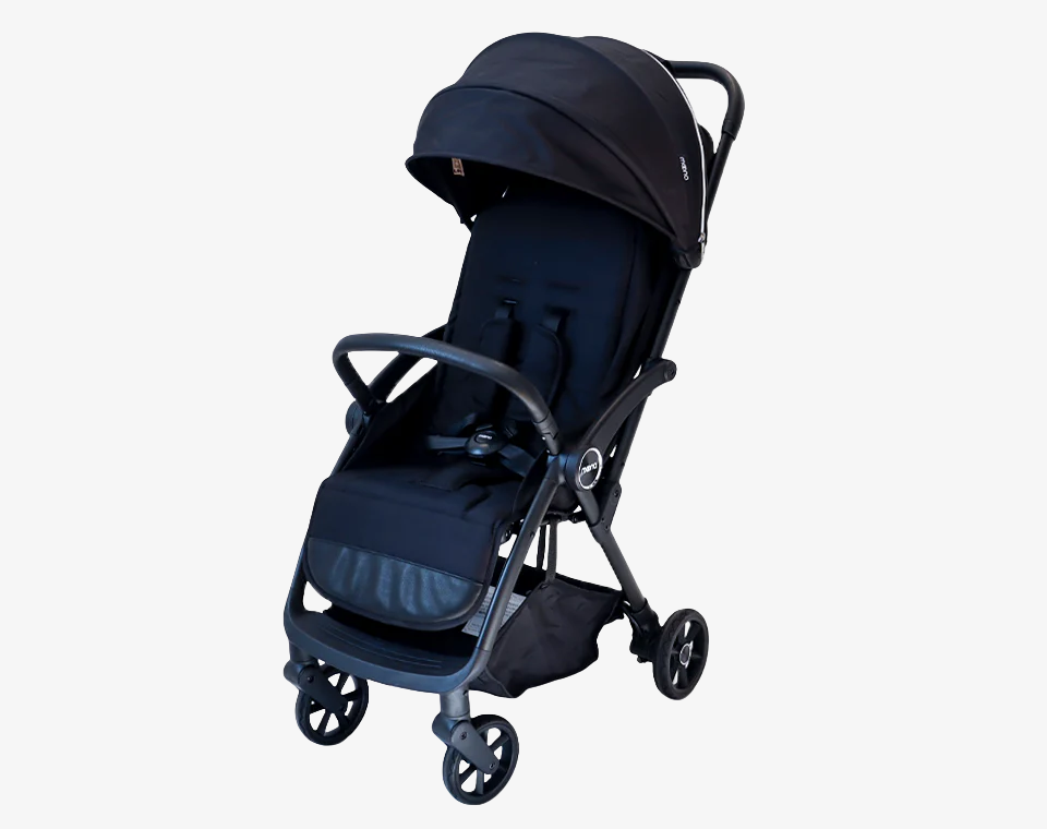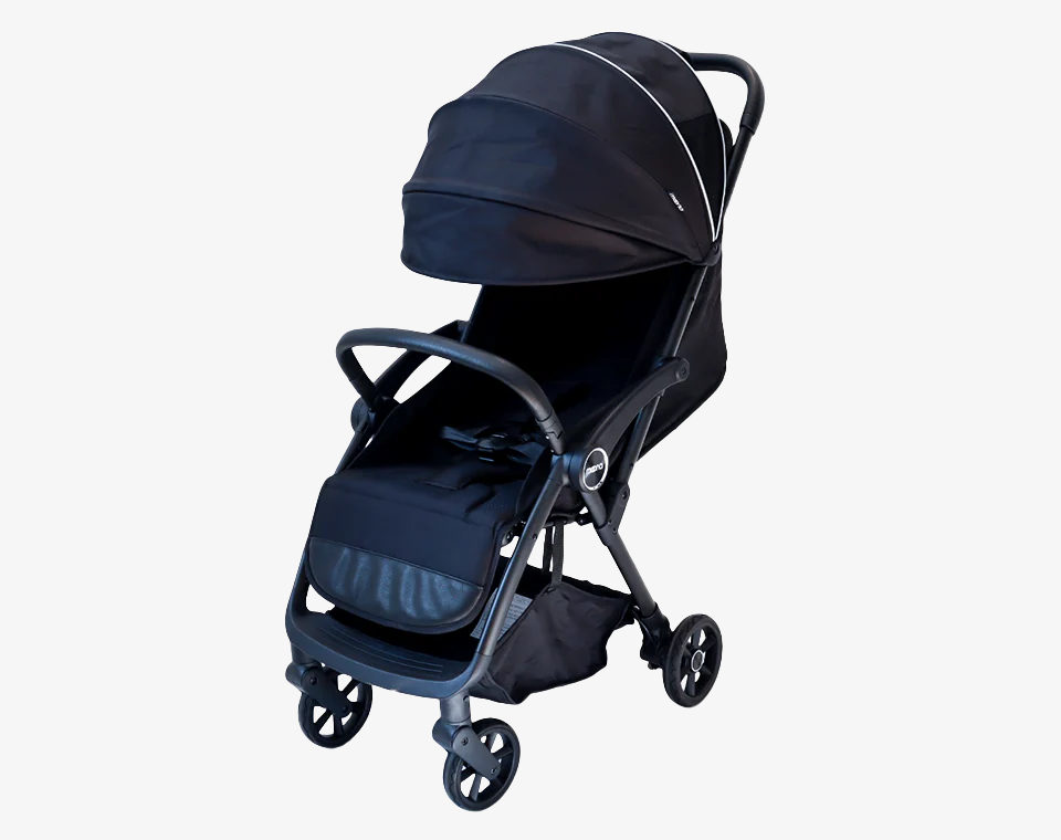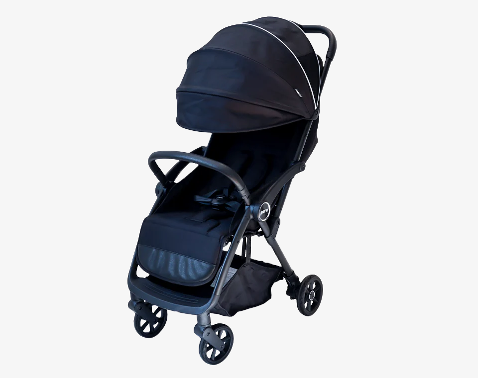טיולון דגם Iggy מבית MOONA בצבע שחור עם שלד שחור וידיות עור בצבע שחור
