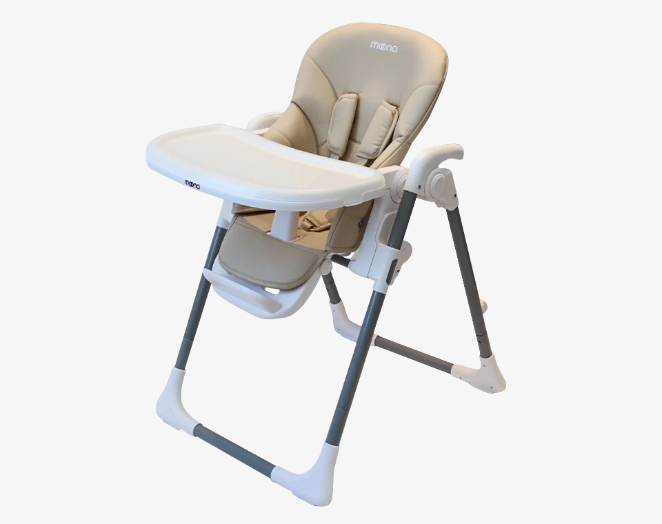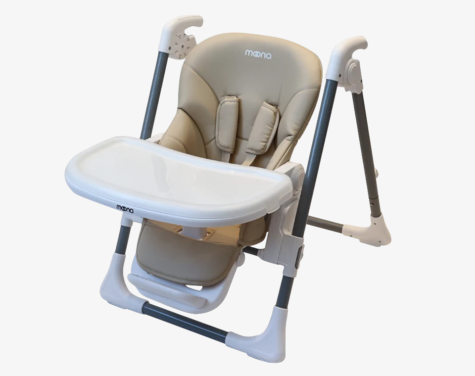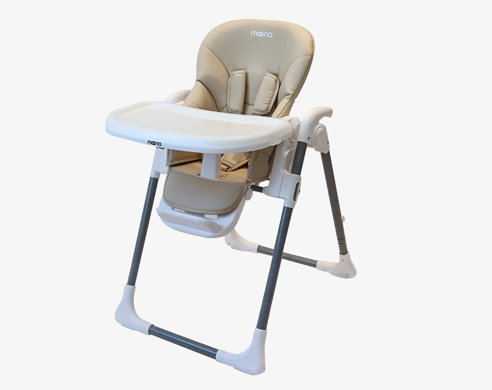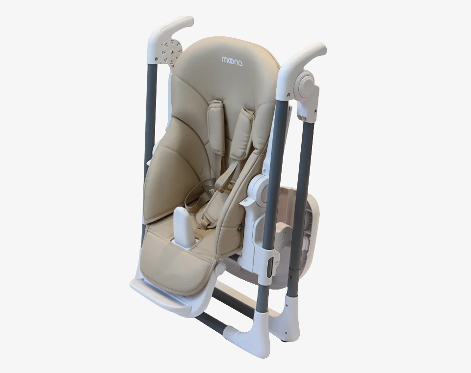 כסא אוכל מתקפל דגם YOKO מבית Moona, בעל ריפוד דמוי עור המעניק לכסא מראה יוקרתי.