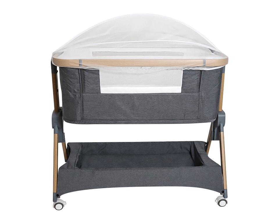 עריסה מתקפלת ונצמדת Kai fold - אפור/ דמוי עץ