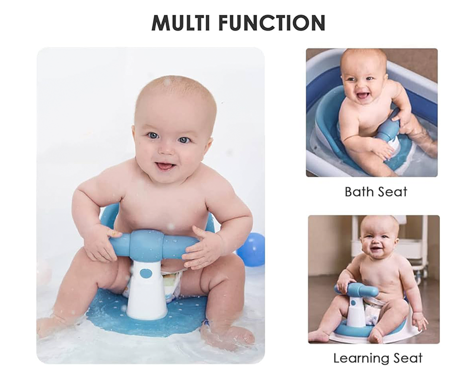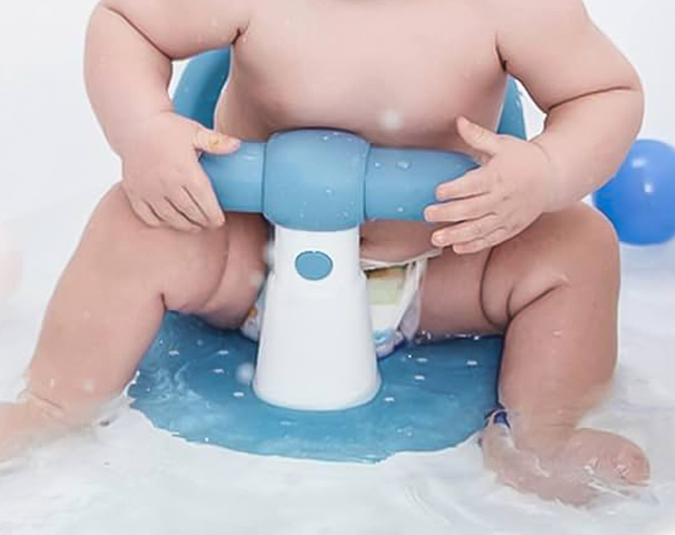 מושב ארגונומי מרופד בגומי רך וידידותי לעור התינוק, המושב מוצמד ב4 נקודות ואקום לתחתית האמבטיה ובכך שומר על יציבות המושב ומונע התהפכות.
