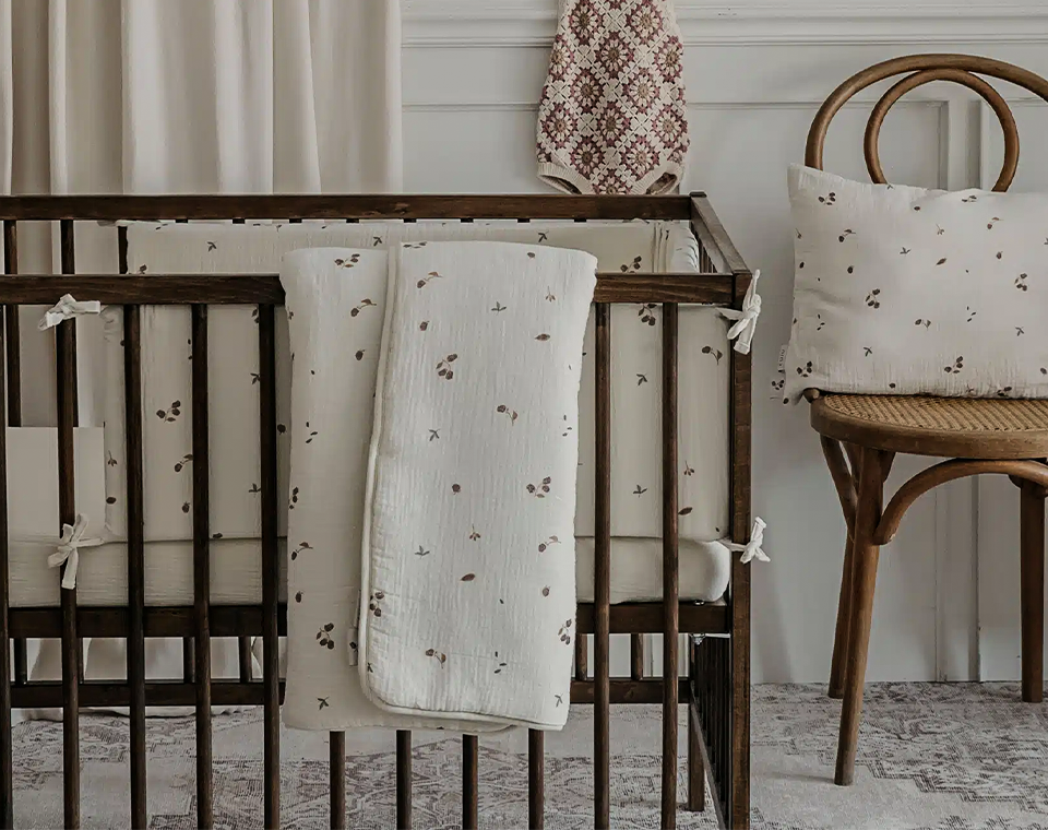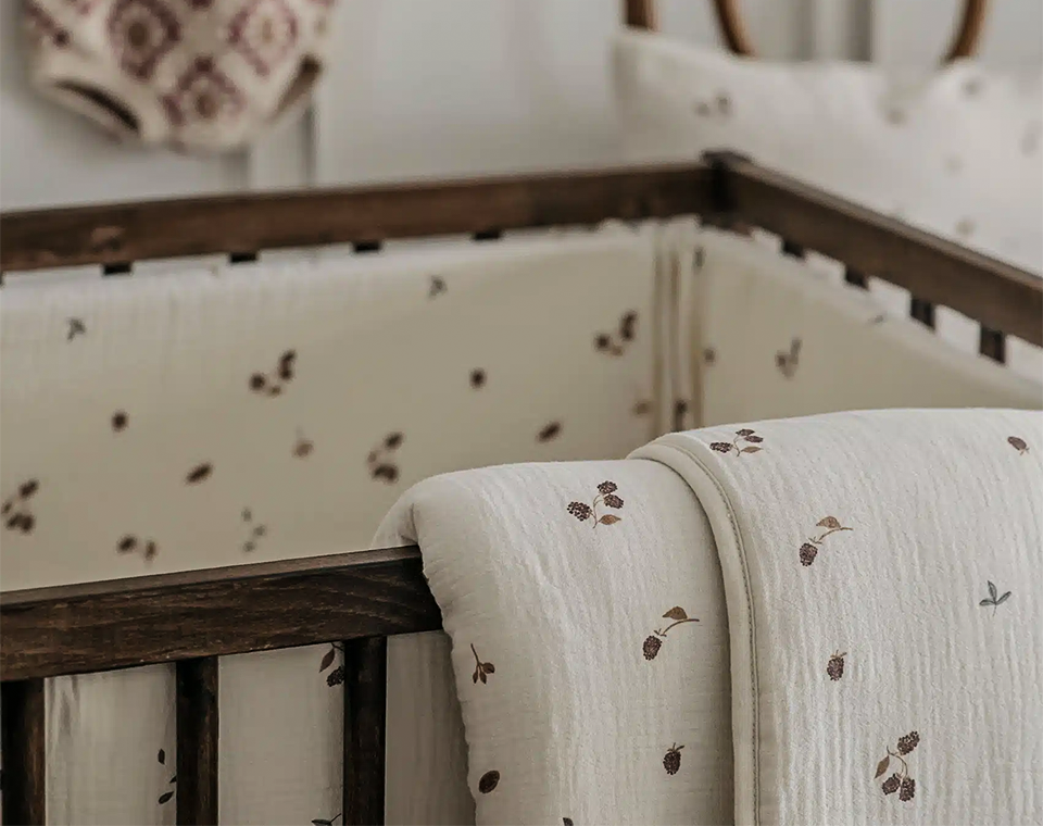 הסט מכיל: סדין למיטת תינוק/מיטת מעבר, מגן ראש מתכבס, שמיכה גדולה רב עונתית.