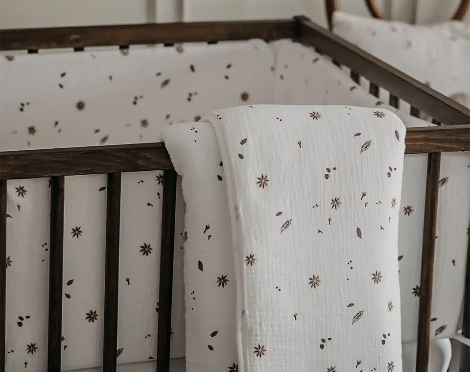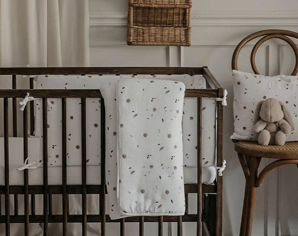 הסט מכיל: סדין למיטת תינוק/מיטת מעבר, מגן ראש מתכבס, שמיכה גדולה רב עונתית.