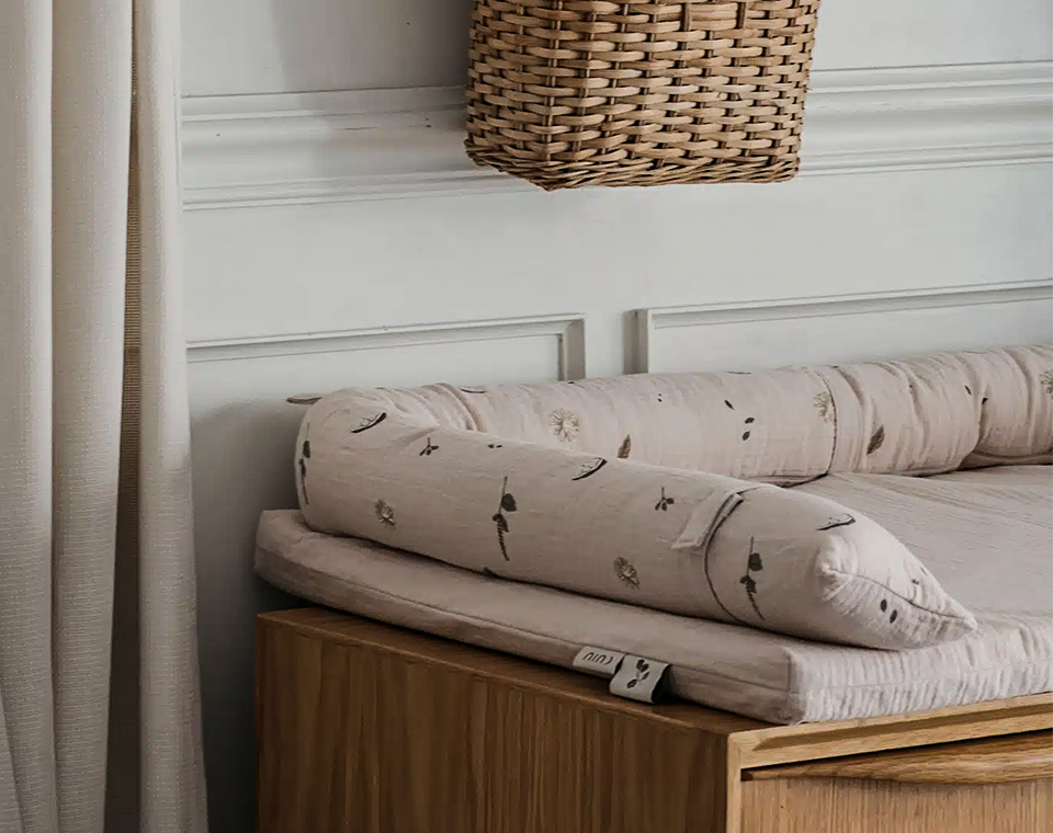 משטח החתלה עם מגן ראש עשוי מ-100% כותנה מבד טטרה.