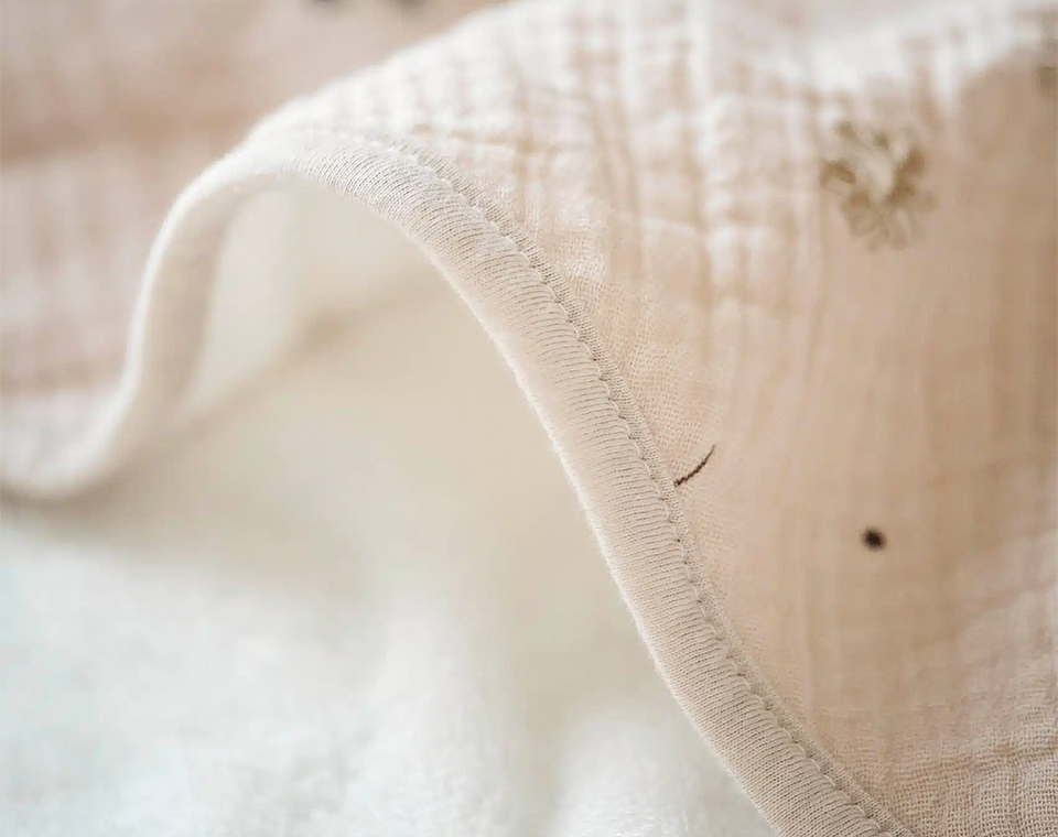 מגבת רכה ונעימה לתינוק עם כובע, צידה העליון עשוי מבד טטרה וצידה הפנימי עשוי מבמבוק.