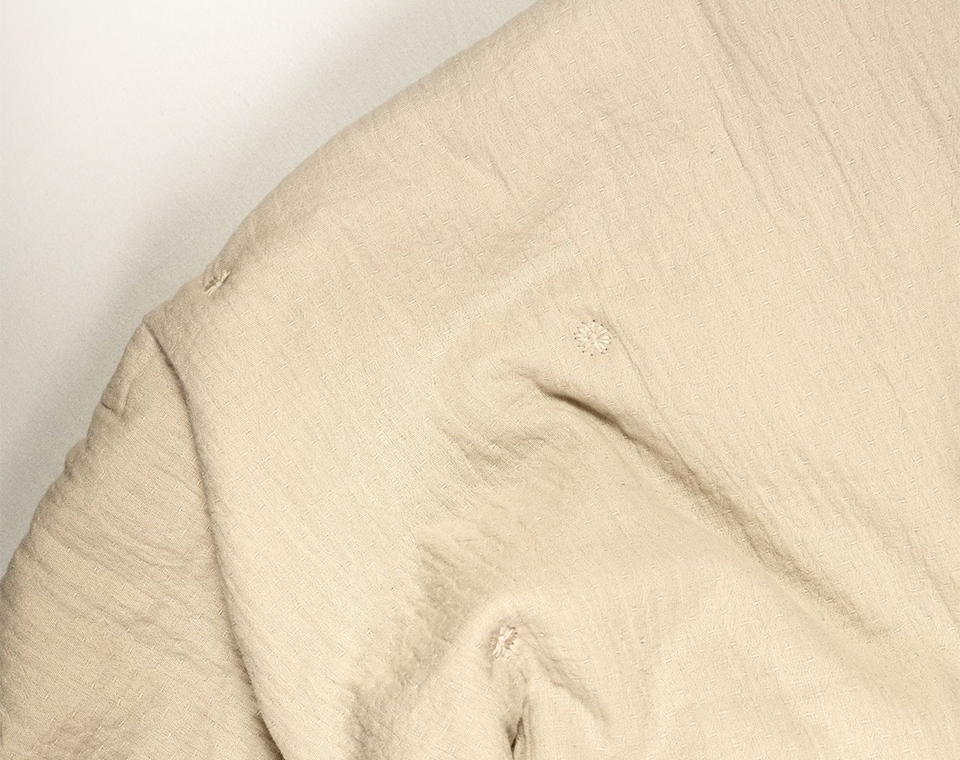 הסט מורכב משלושה חלקים: שמיכה, מגן ראש עם חלוקה וסדין.