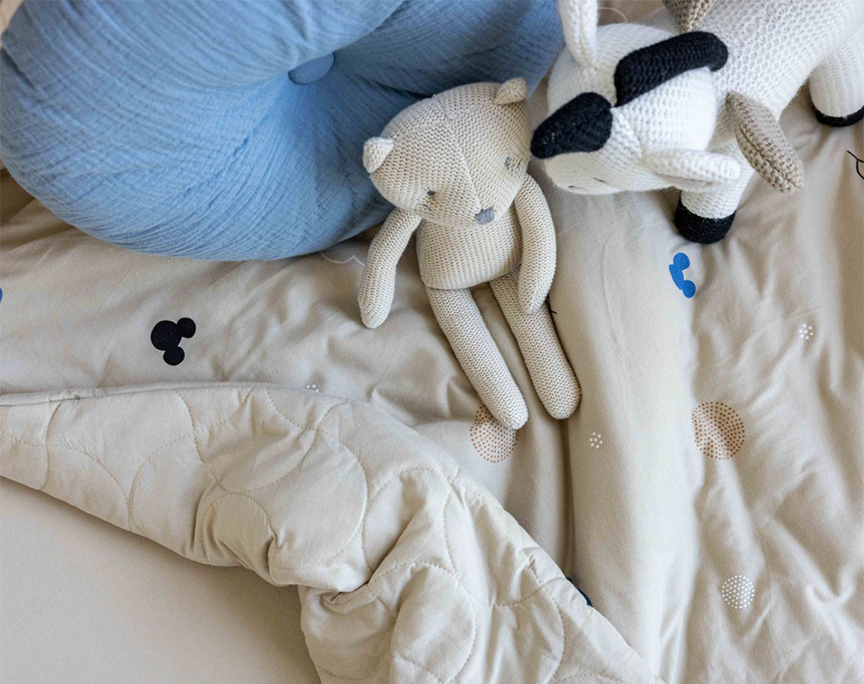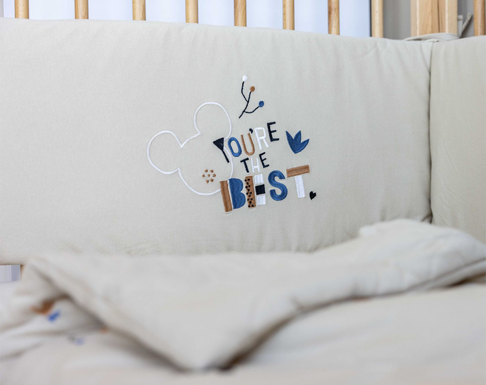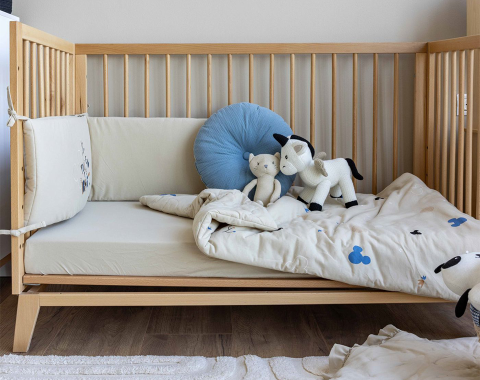 סט מצעים למיטת תינוק עשוי מבד רך ונעים 100% כותנה.