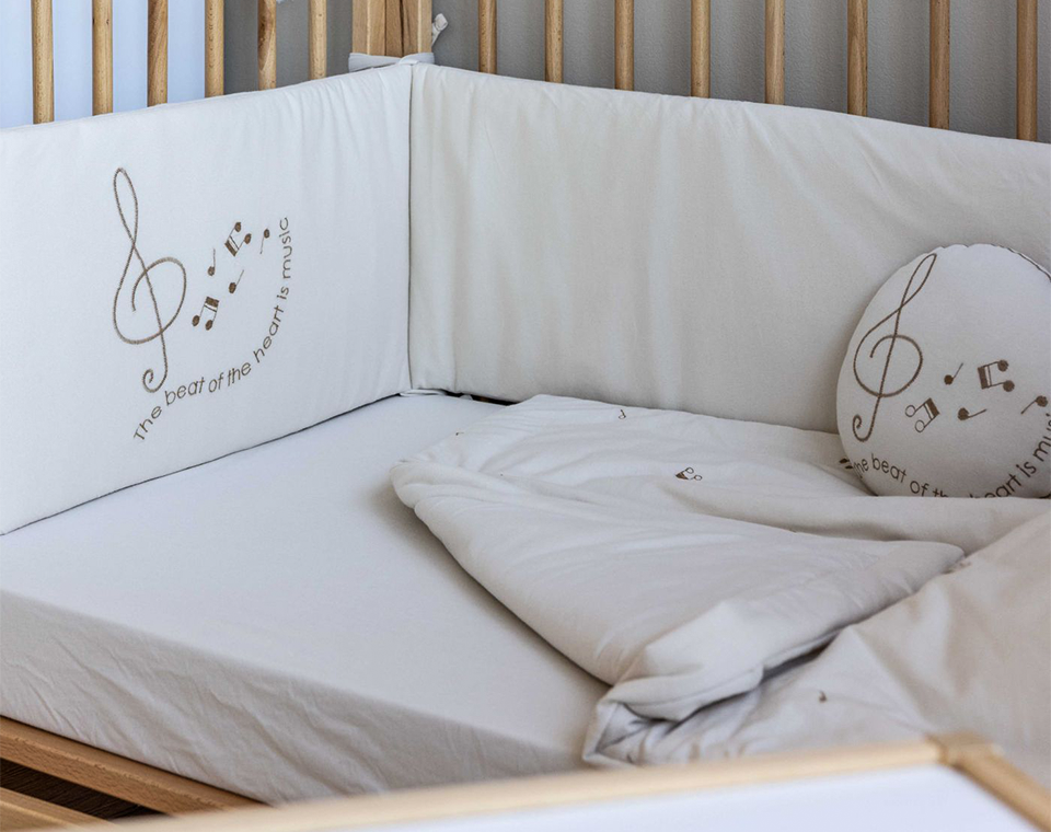 סט מצעים לעריסה עם רקמה EMB בז' מוזיקה