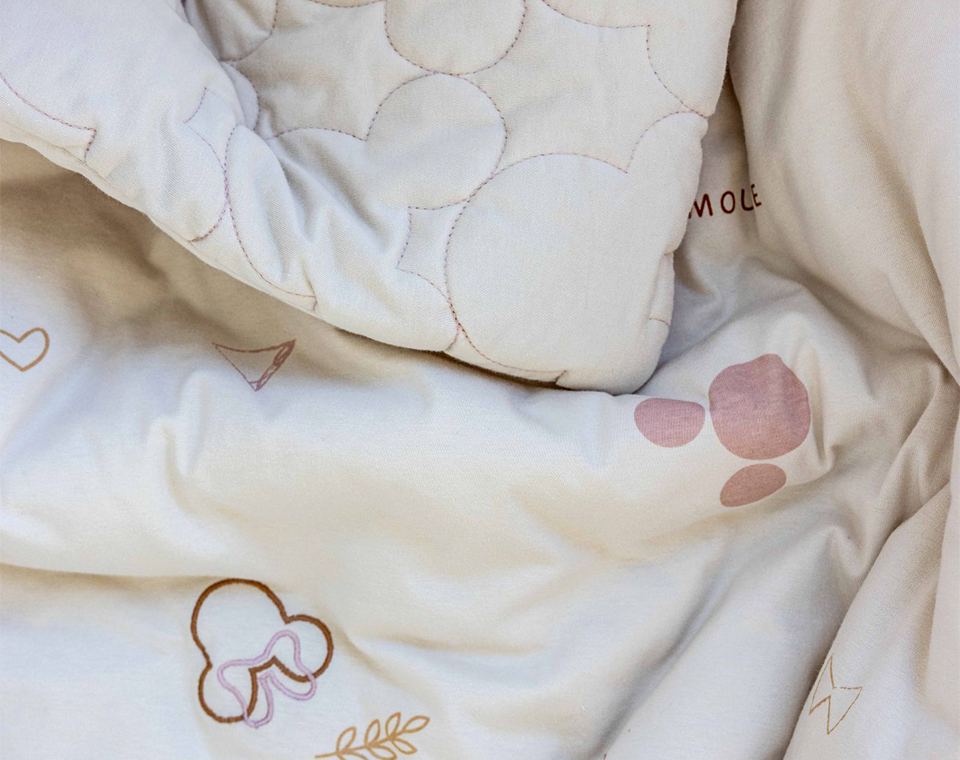 סט מצעים למיטת תינוק עשוי מבד רך ונעים 100% כותנה.