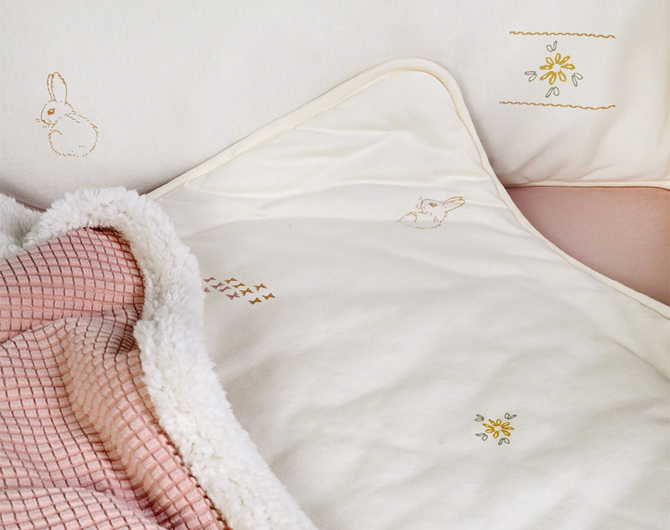 סט מצעים למיטת תינוק עשוי מבד רך ונעים 100% כותנה.