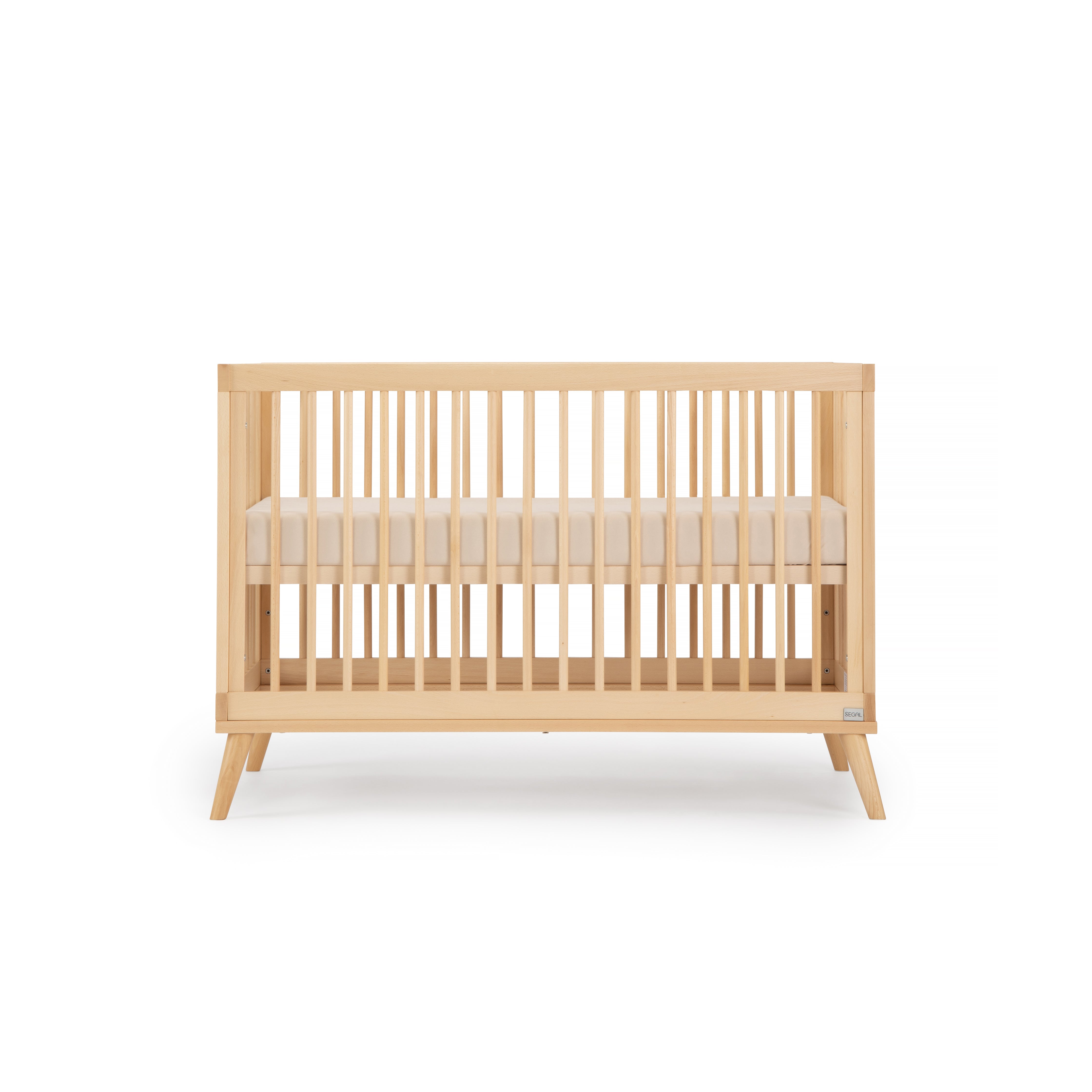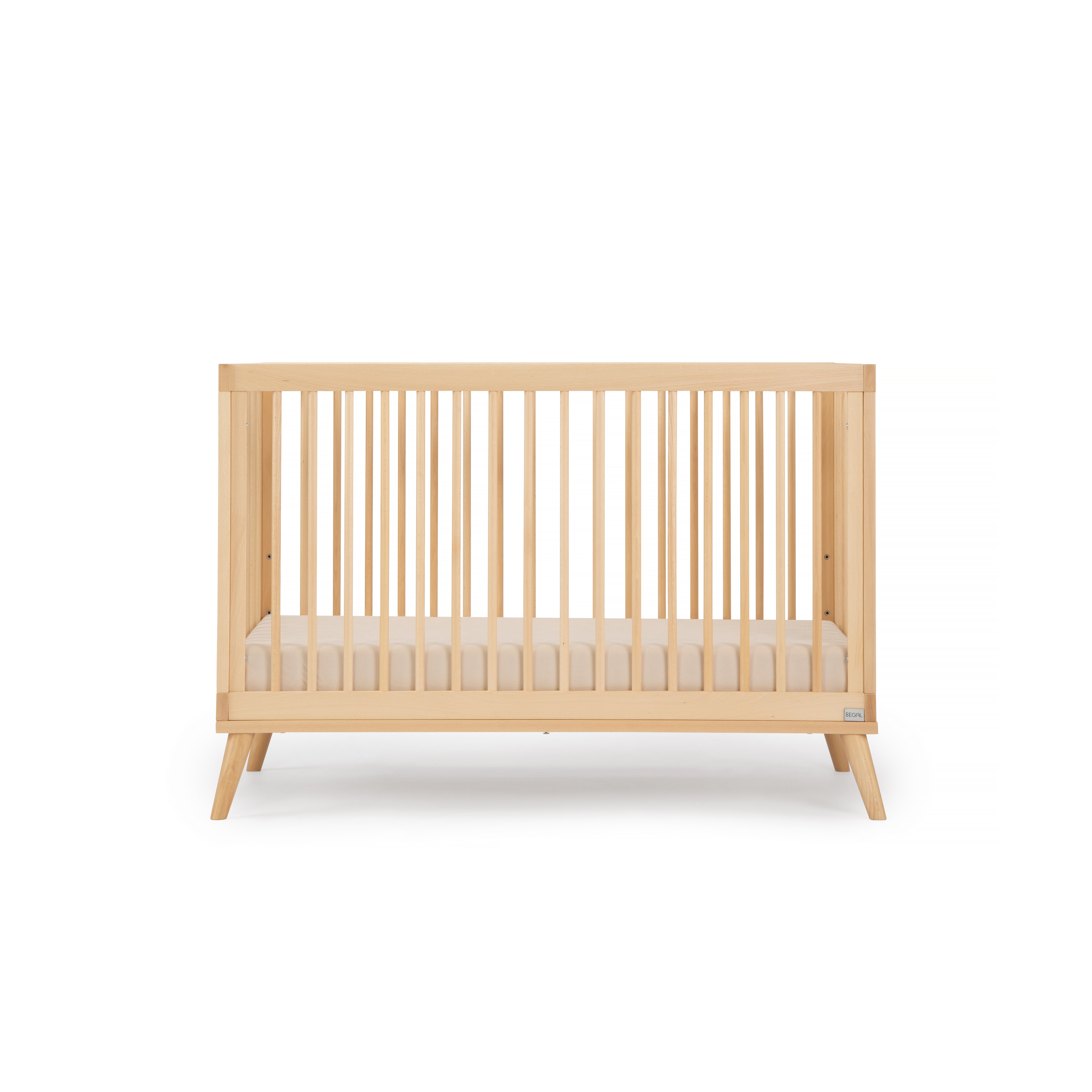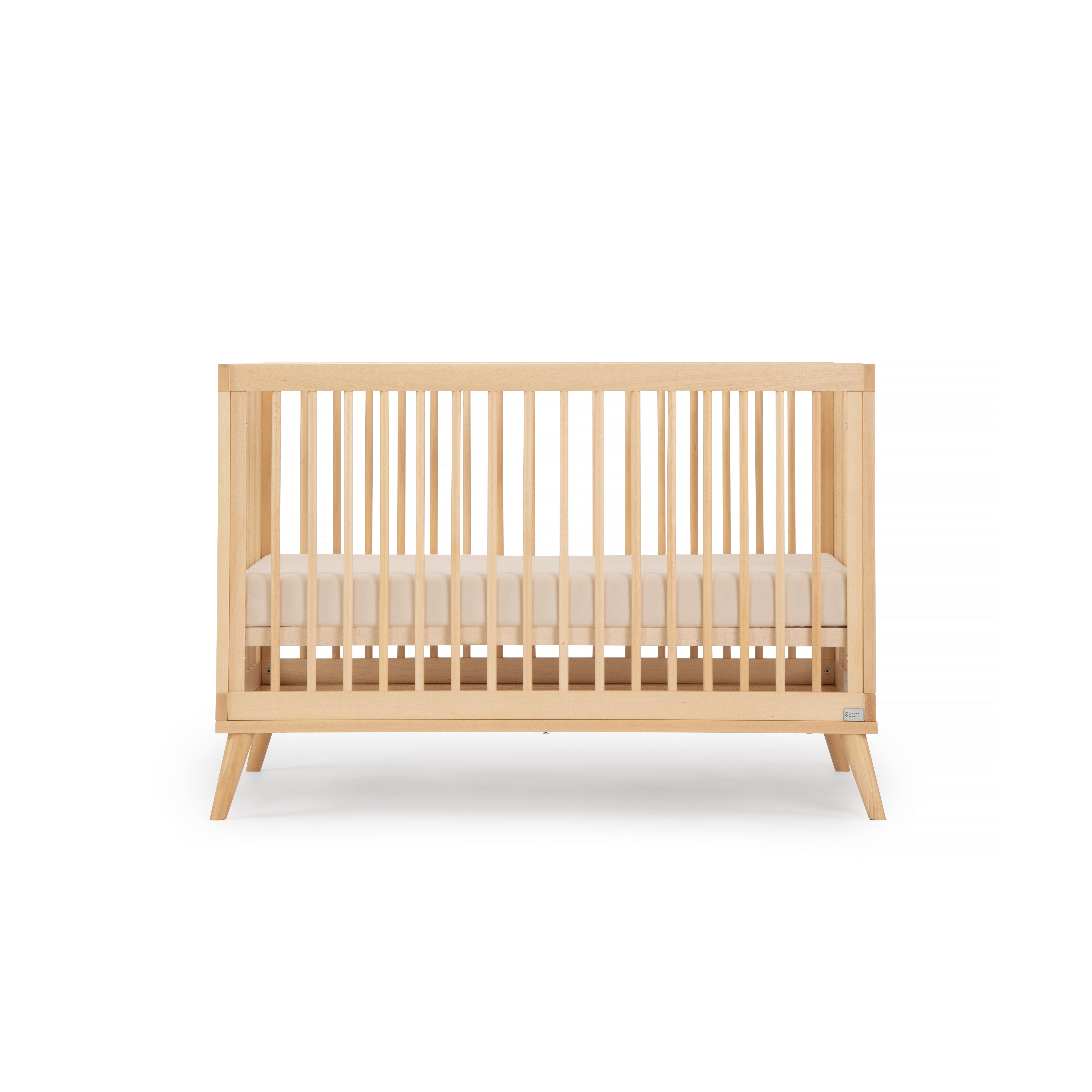 חדר תינוקות מבית "רהיטי סגל", כולל מיטת תינוק מדגם "עדן" בצבע טבעי ושידת אחסנה מדגם "ליז" לבן-טבעי.