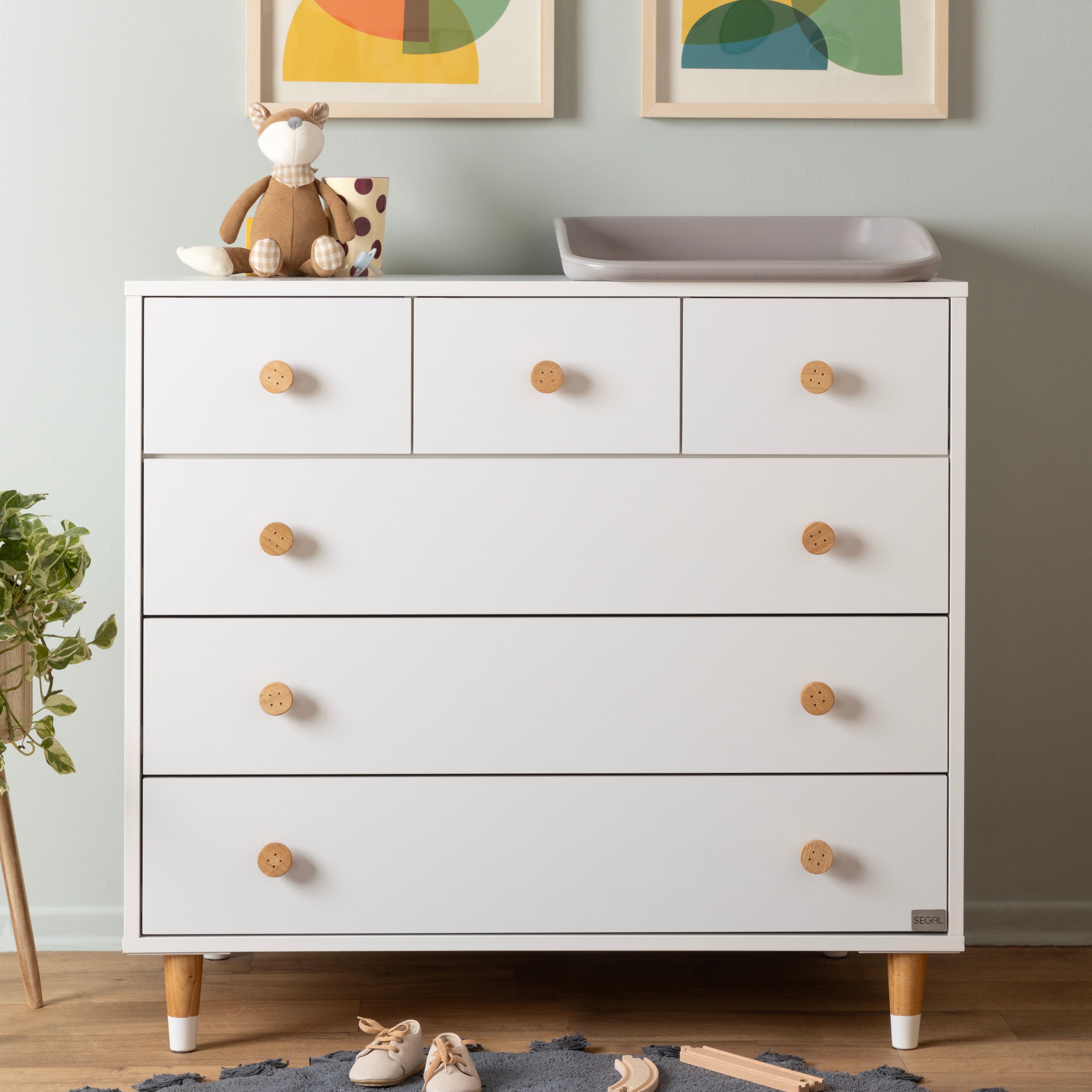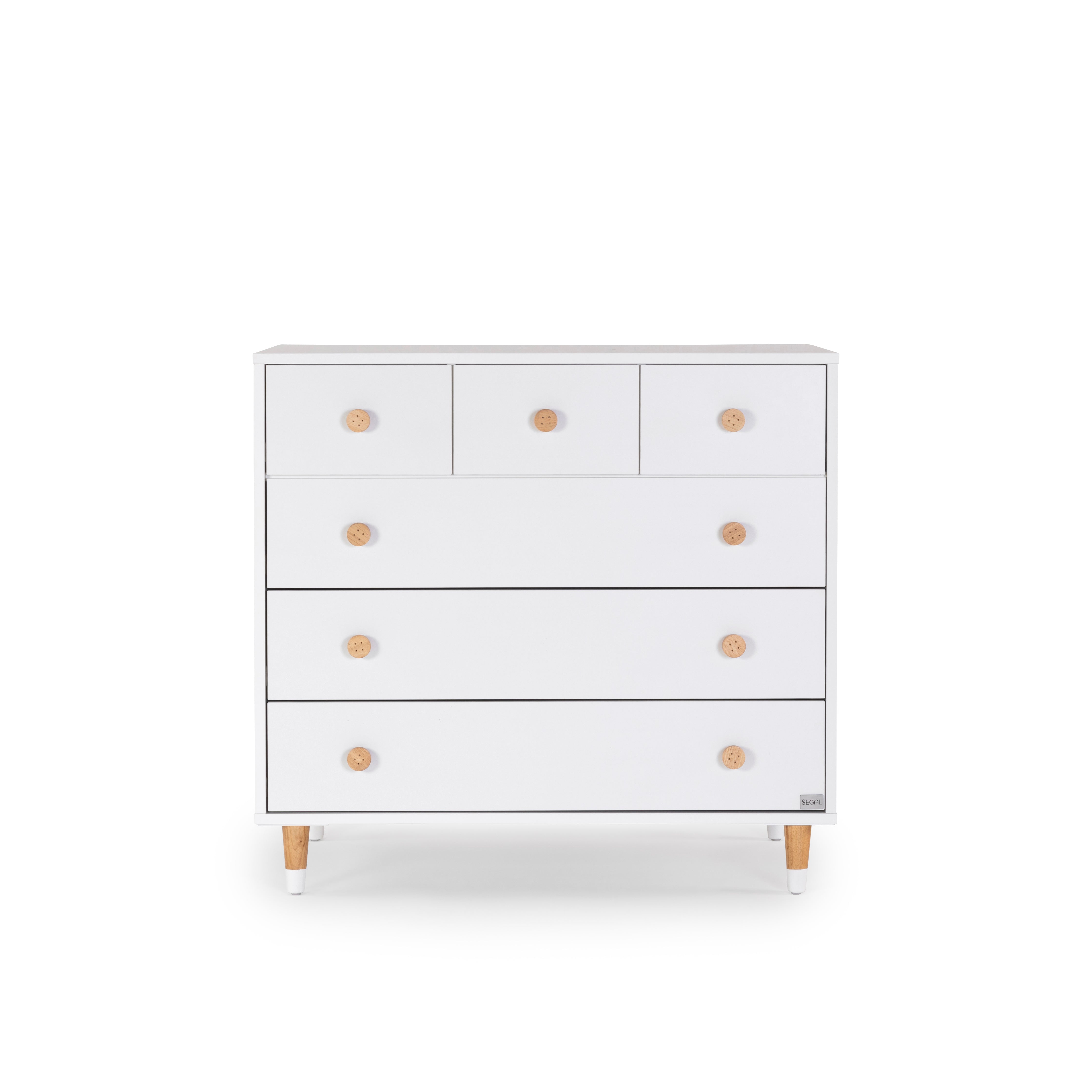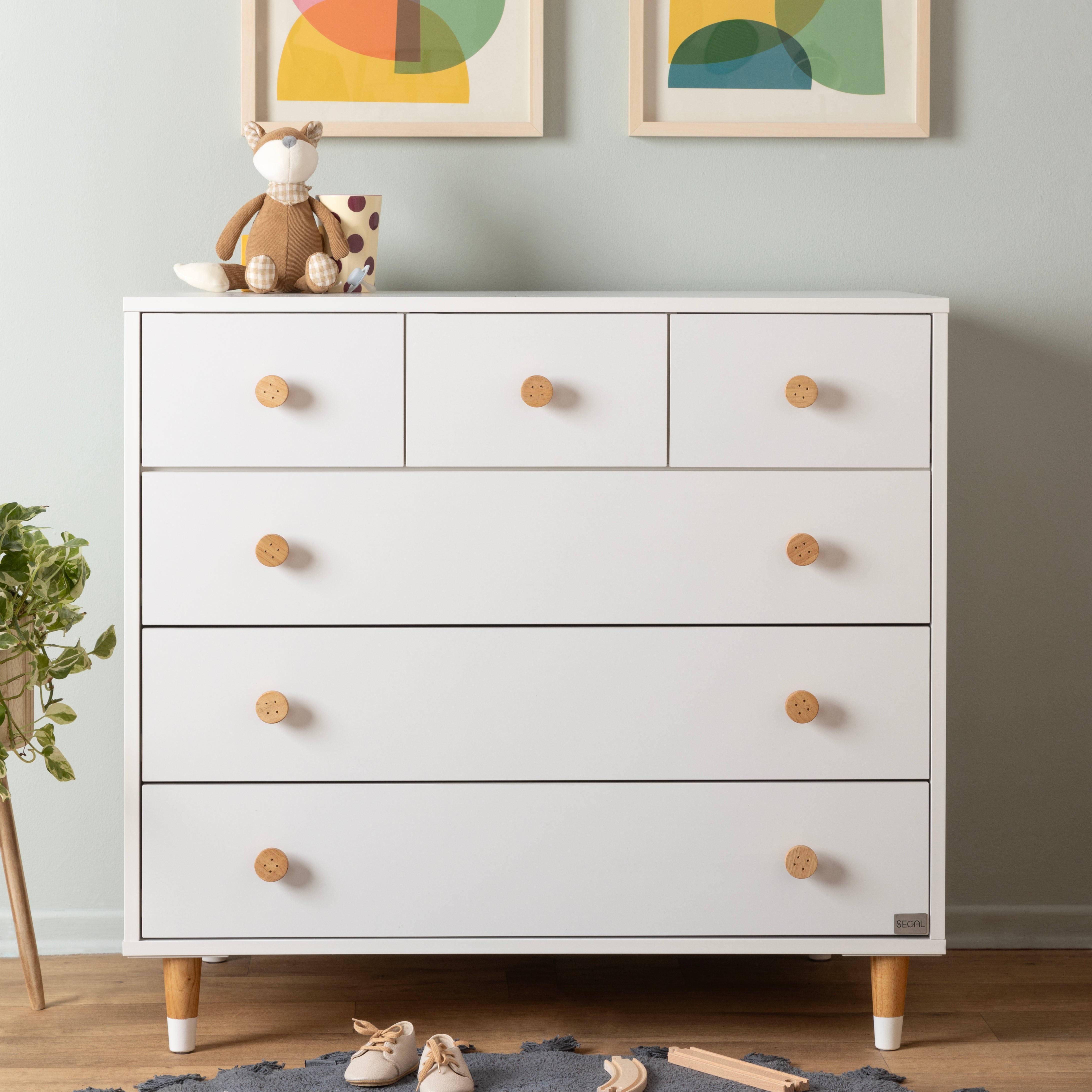 - שידה ברוחב 100 ס”מ, עוצבה מ MDF מלא איכותי וחזק – כולל פנים המגירות, עם גימור מלמין. חלוקת המגירות נועדה לייצר סדר וארגון פונקציונאלי למוצרי ובגדי התינוק, כך שיהיה לכם נוח לחתל ולהחליף בגדים על השידה. כדי לשמור על בטיחות התינוק שלכם הקפדנו על חומרים איכותים ועמידים לאורך שנים.